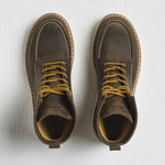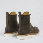 Scarponcino stringato da uomo in pelle nabuk ingrassato idrorepellente con effetto invecchiato icona di robustezza e stile senza tempo. Realizzato artigianalmente in Italia, garantisce comfort e durata. La suola in gomma bianca e le cuciture a contrasto donano un look contemporaneo, mentre il dettaglio del marchio impresso a caldo sulla linguetta e all’interno sottolinea l’autenticità della collezione. un modello ideale per la stagione fredda, per outfit dallo spirito deciso.
