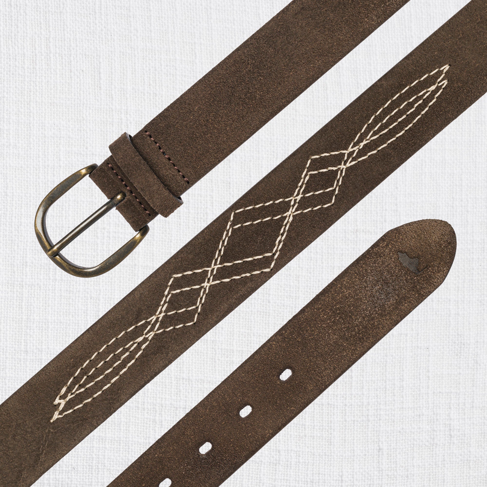 Suede belt with embroidery 100% leather - Light Brown