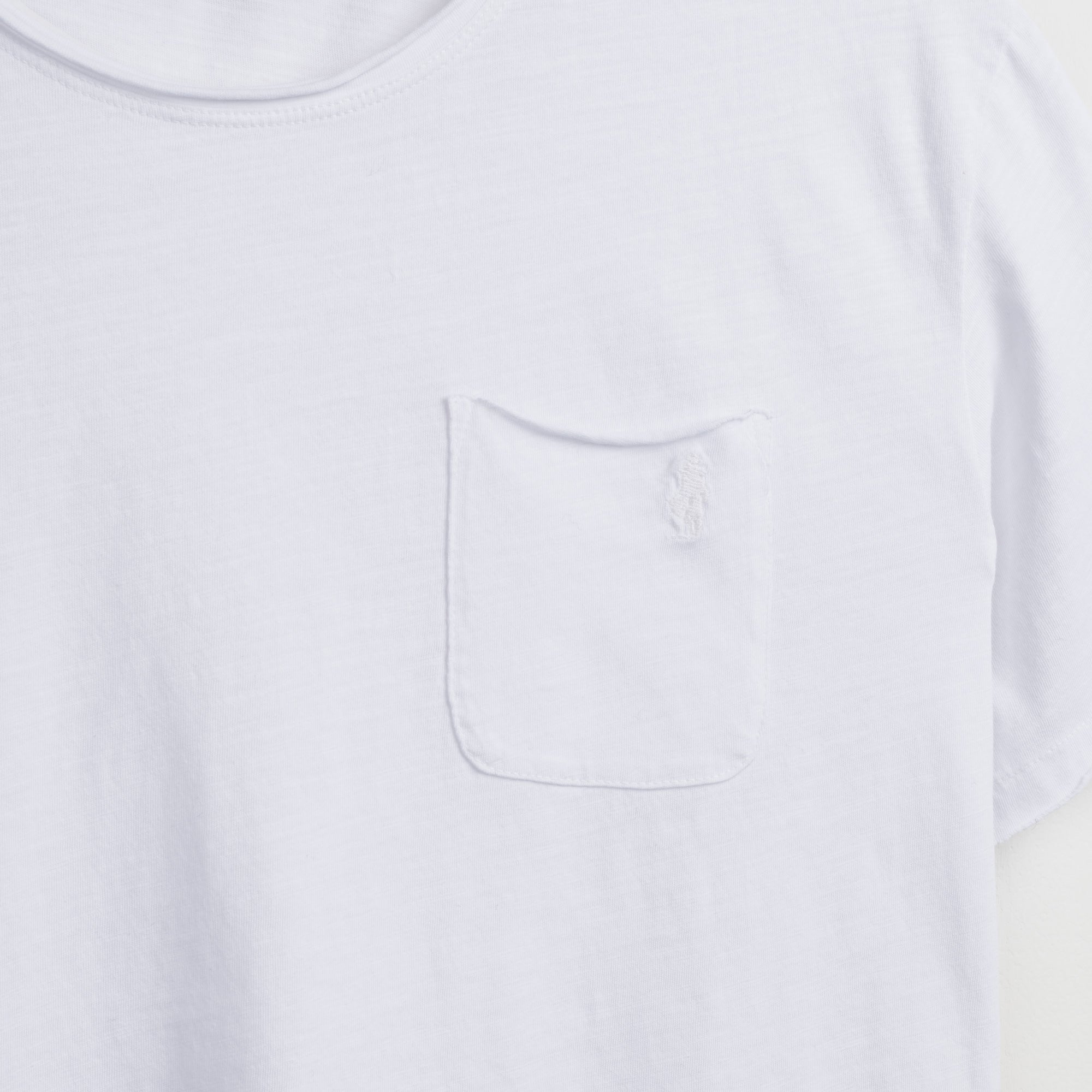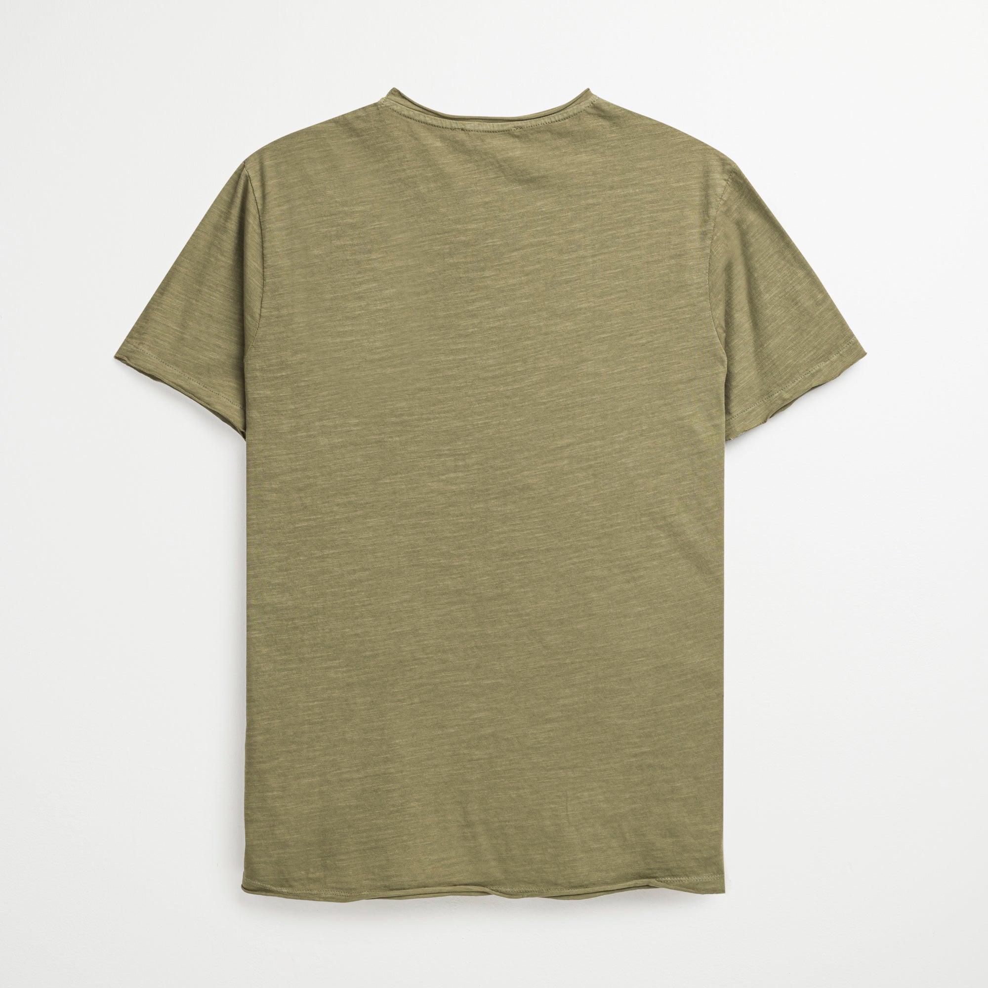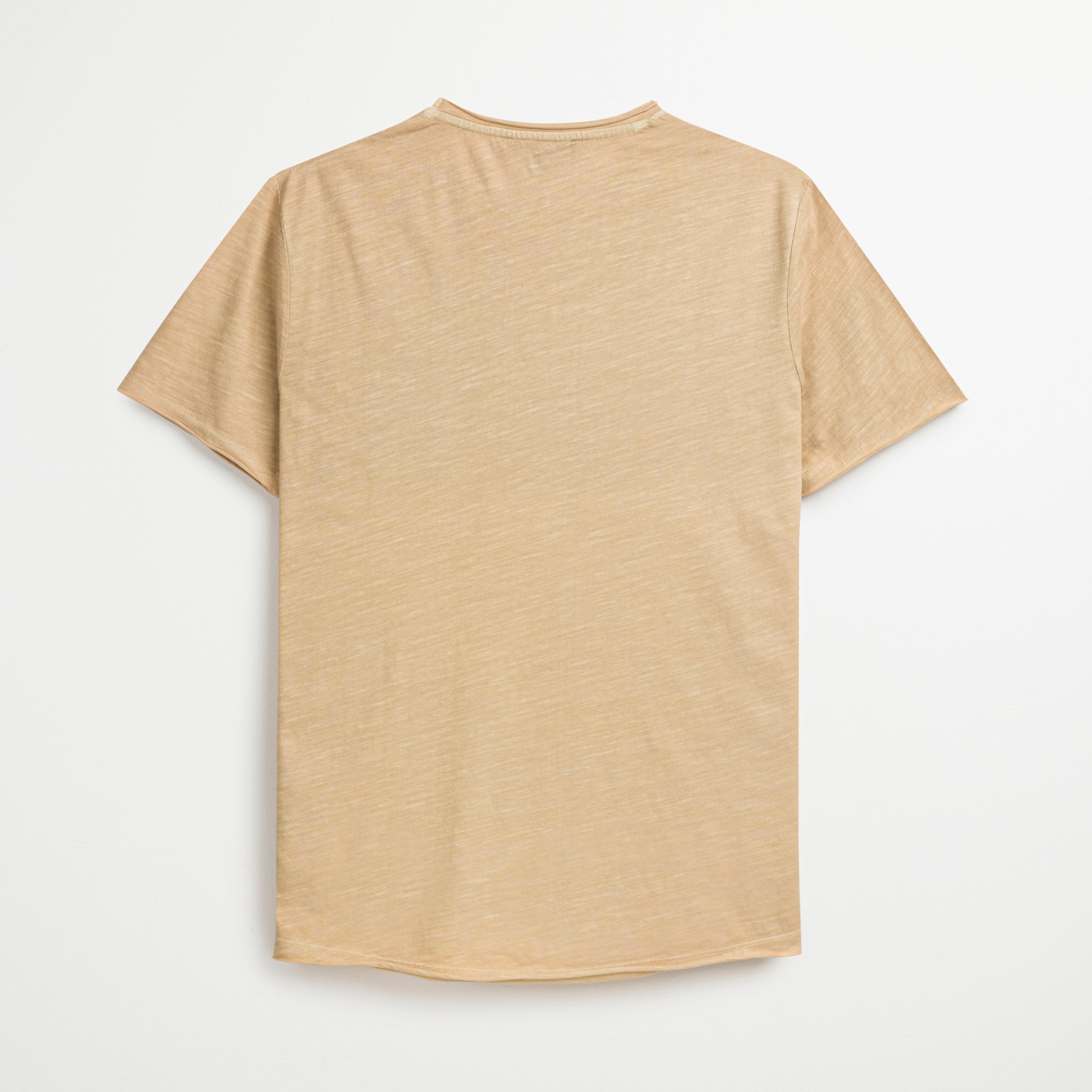 T-shirt in flame cotton jersey dyed with pigment, a treatment that gives the garment an authentic and worn look thanks to the subtle color nuances. The irregular texture of the flame cotton adds depth and character to the fabric, making it perfect for a casual style with a vintage touch. The design is enhanced by raw-cut details on the neckline and hem for a bold look, as well as an applied pocket that emphasizes its relaxed aesthetic. The enzymatic treatment provides a soft and comfortable hand, for a natural fit that is pleasant to wear.