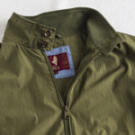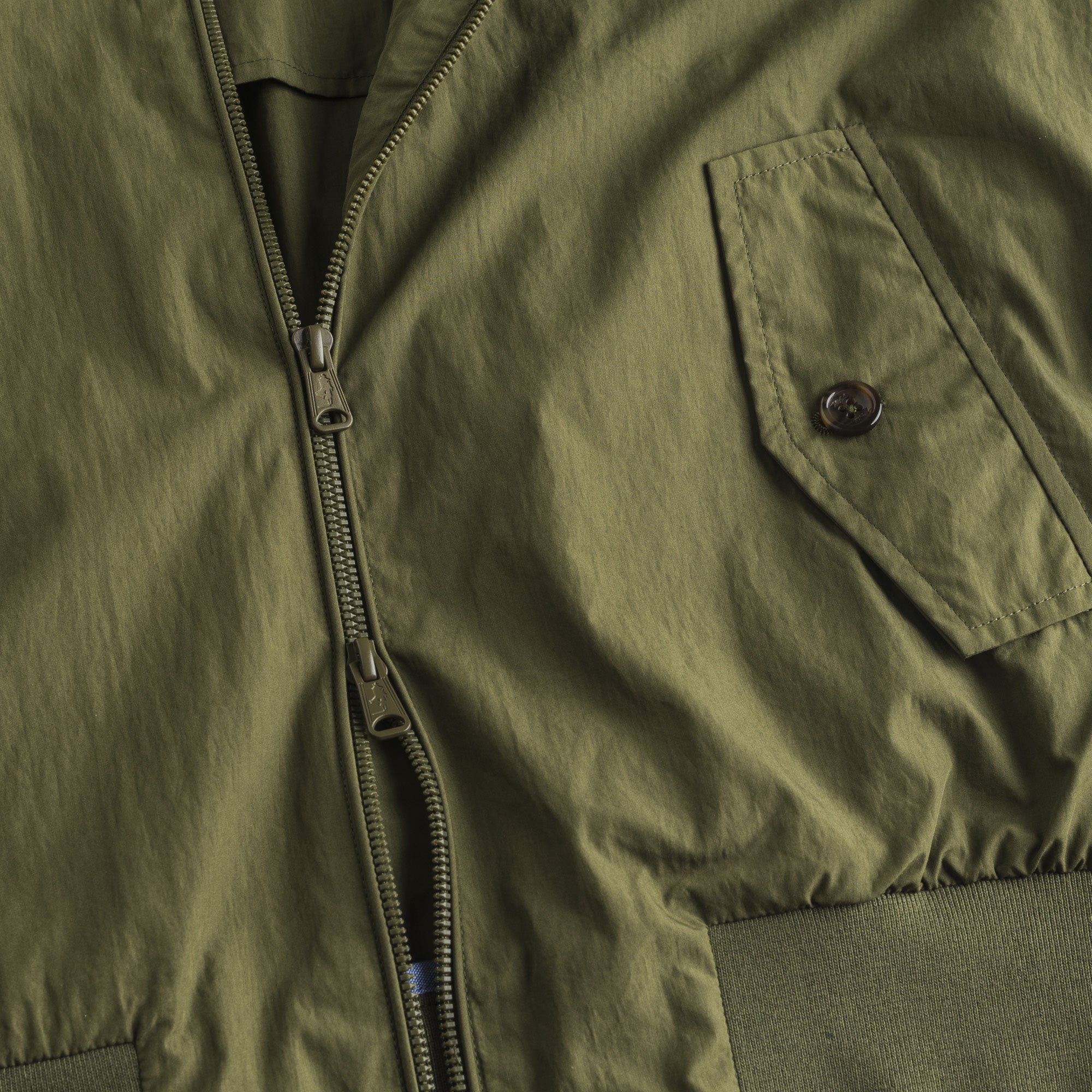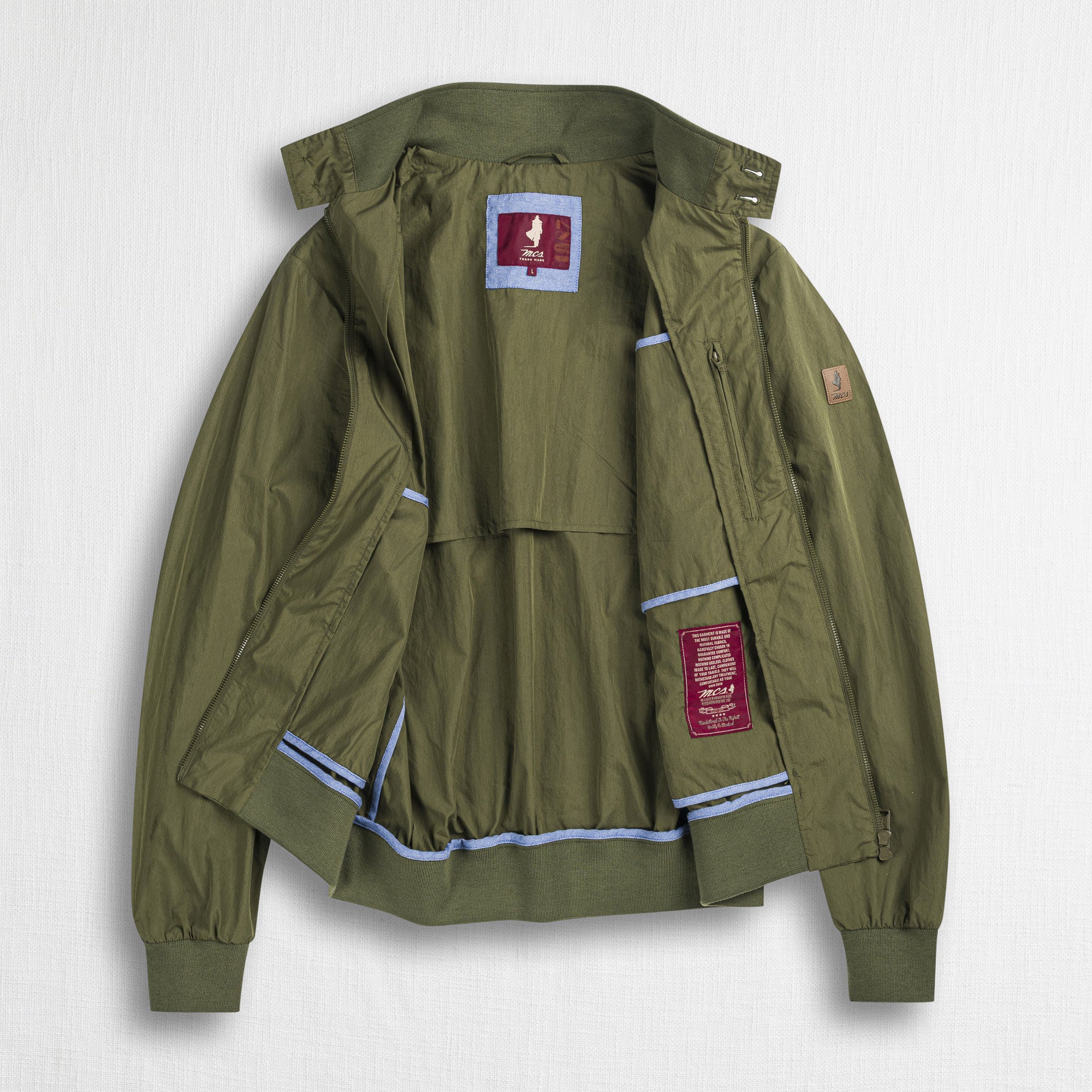 Men's Dark Olive Harrington jacket made of windproof cotton nylon with water-repellent treatment, designed to face the mid-season with an outdoor attitude. This Harrington jacket combines comfort and functionality: double-slider zipper, flap pockets with button, inner pocket, and ribbing at the hem and cuffs. The leather patch on the sleeve marks a contemporary classic, recognizable and versatile.