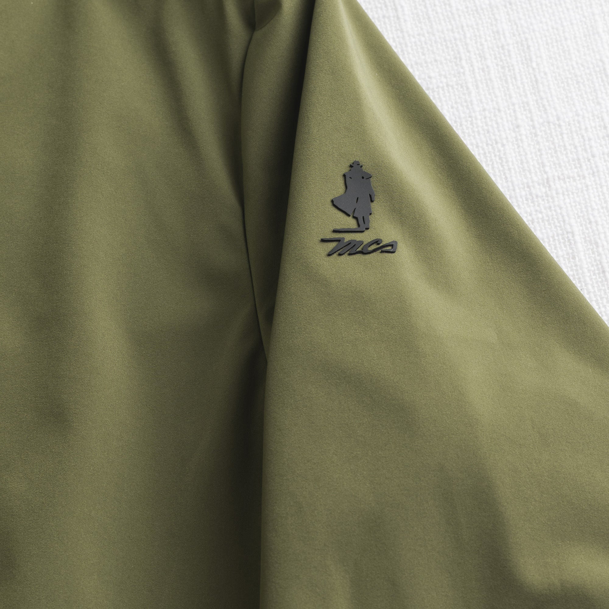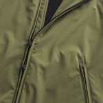 Men's Dark Olive softshell jacket with a "bomber" style hood made of stretch fabric, windproof and water-repellent, ideal for active everyday use. This softshell jacket with a fixed hood offers lightweight protection and comfort thanks to the double-slider zip closure, zippered side pockets, and an inner pocket. The silicone patch on the sleeve adds a distinctive detail to a functional and timeless garment.