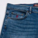 Pantalone cinque tasche in denim stretch 9.8 once , leggero e ideale per un utilizzo quotidiano nella stagione primavera/estate. La linea slim definisce il profilo senza costringere, cou uno stile moderno e slanciato. Il design classico di questo jeans è impreziosito da dettagli iconici come il ricamo del Rider sul taschino destro, la salpa in jacron e minuterie metalliche logate color canna di fucile, che rafforzano un codice stilistico sempre distintivo.