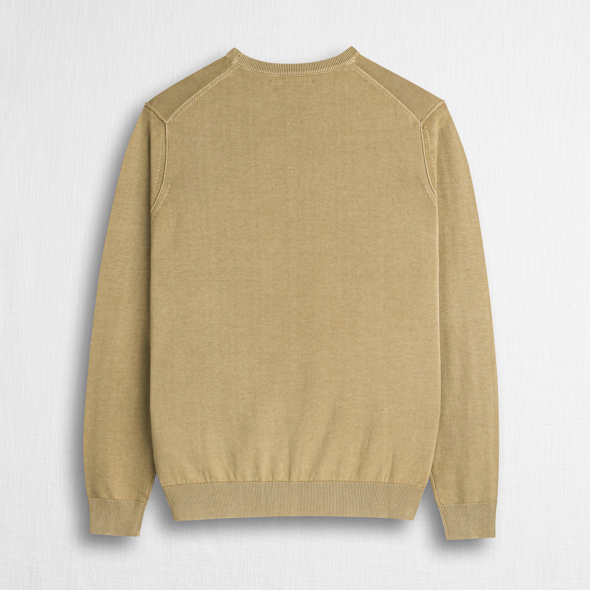 Men's crew neck sweater in 100% brushed Khaki cotton, a finish that gives the garment a smooth, even surface and a pleasantly soft feel. Made with a 12-gauge knit, this crew neck sweater offers a perfect balance of lightness and comfort, ideal for transitional seasons. The garment-dyed acid wash treatment gives it a worn and authentic look, while the enzymatic wash enhances the softness of the yarn. The regular fit ensures comfort and versatility, making the piece suitable for smart casual spring and summer looks. The design is completed by the Rider MCS embroidery on the chest, an iconic and distinctive detail.