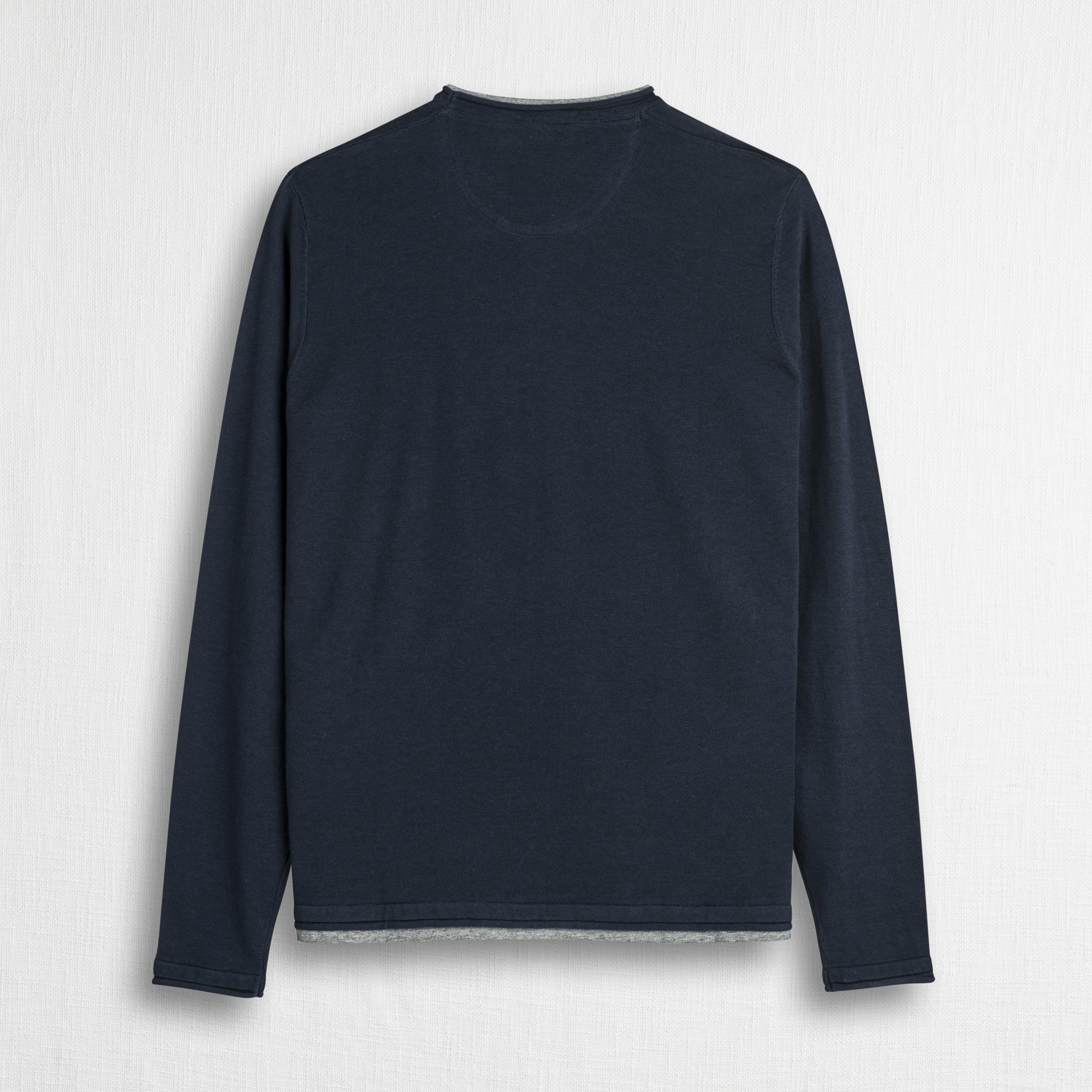 - crew neck with faux t-shirt effect