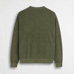 Men's Dark Olive crew neck sweater made of 100% piquet cotton with a 12-gauge knit, ideal as a lightweight sweater for milder months. The distinctive raised texture of the cotton piquet promotes breathability and comfort, giving the garment a refined look, while the acid wash treatment adds a worn, natural touch. The tone-on-tone Rider MCS embroidery at the hem adds a signature detail, and the Regular fit ensures comfort and versatility for any occasion.