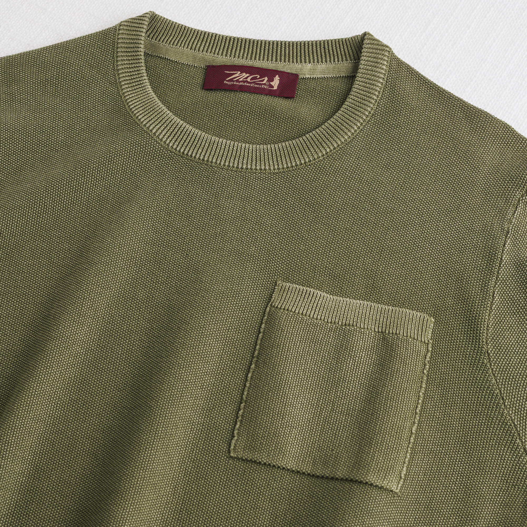 Piquet Crew Neck Acid Wash Shirt - Dark Olive