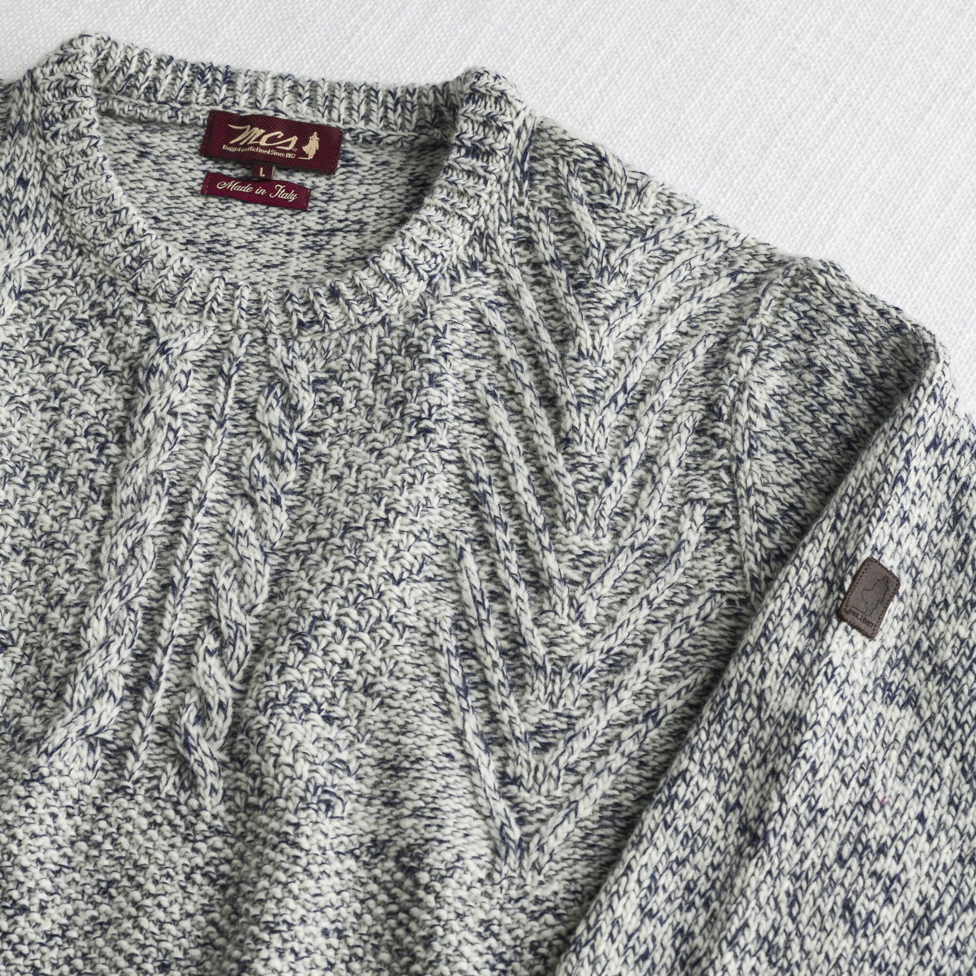Maglia girocollo uomo in morbido filato di misto lana in finezza 7 decorato con motivo jacquard. Il disegno jacquard nella parte alta e bassa della maglia dona movimento e un tocco distintivo al look, mentre le maniche raglan aggiungono un dettaglio sofisticato. Il lavaggio agli enzimi garantisce comfort e morbidezza. Rifinita con patch in pelle sulla manica sinistra per un look autentico.