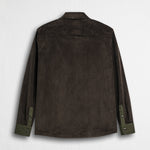 Corduroy overshirt with 800 lines featuring utility pockets and refined details in British Millerain coated fabric on the cuffs, undercollar, and along the inner edges, creating a textural contrast that expresses character and durability. The front and cuff closures are completed with custom pressure buttons featuring the MCS logo.