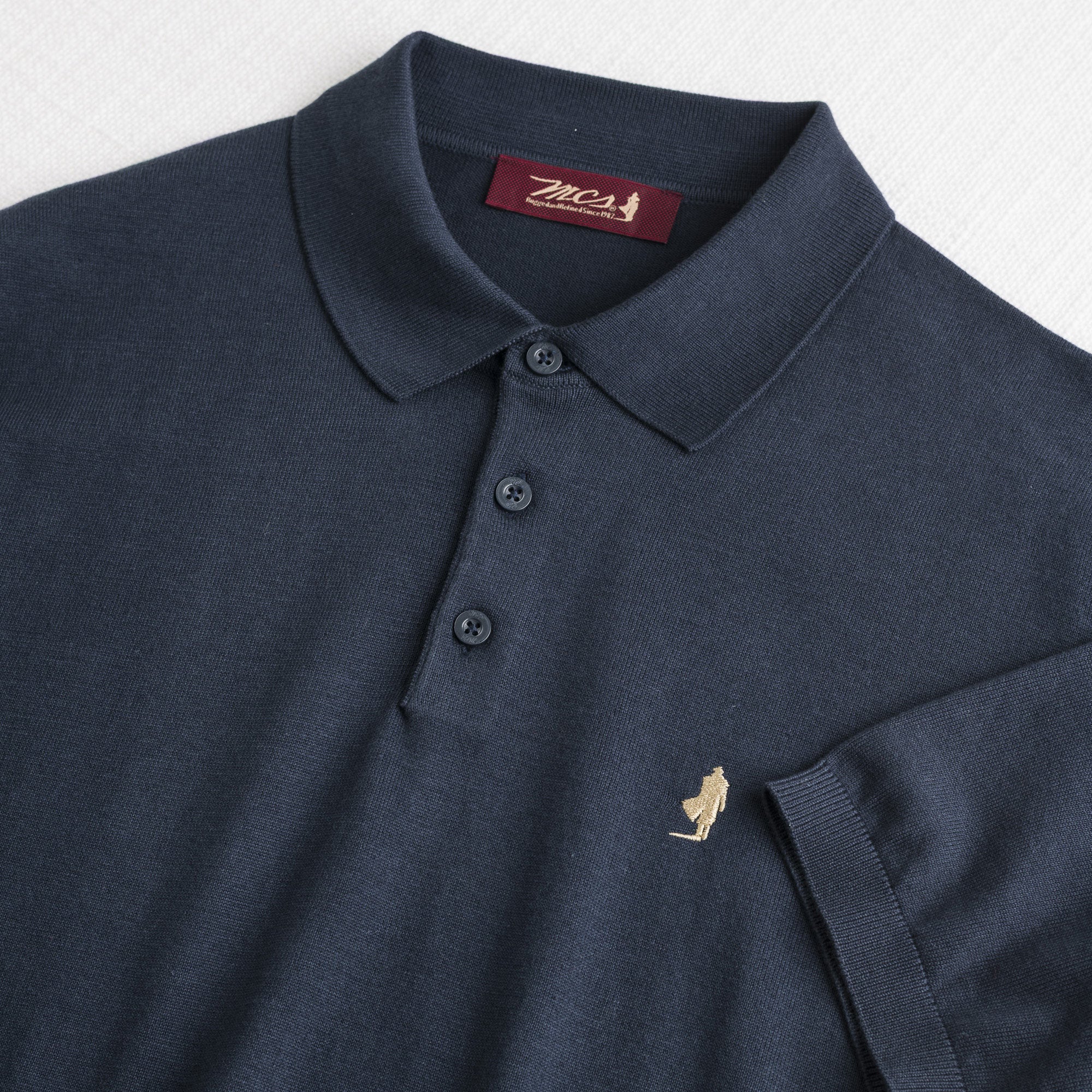 Men's short-sleeve polo shirt in Navy Blue made of fine 12-gauge cotton knit, lightweight and breathable, perfect for warmer days. The enzymatic wash enhances the softness and comfort of the yarn, highlighting its pleasant feel to the touch. The simple solid color design is completed by a knit collar with a three-button closure, while the Rider MCS embroidery on the chest adds a distinctive detail for a garment with authentic character.