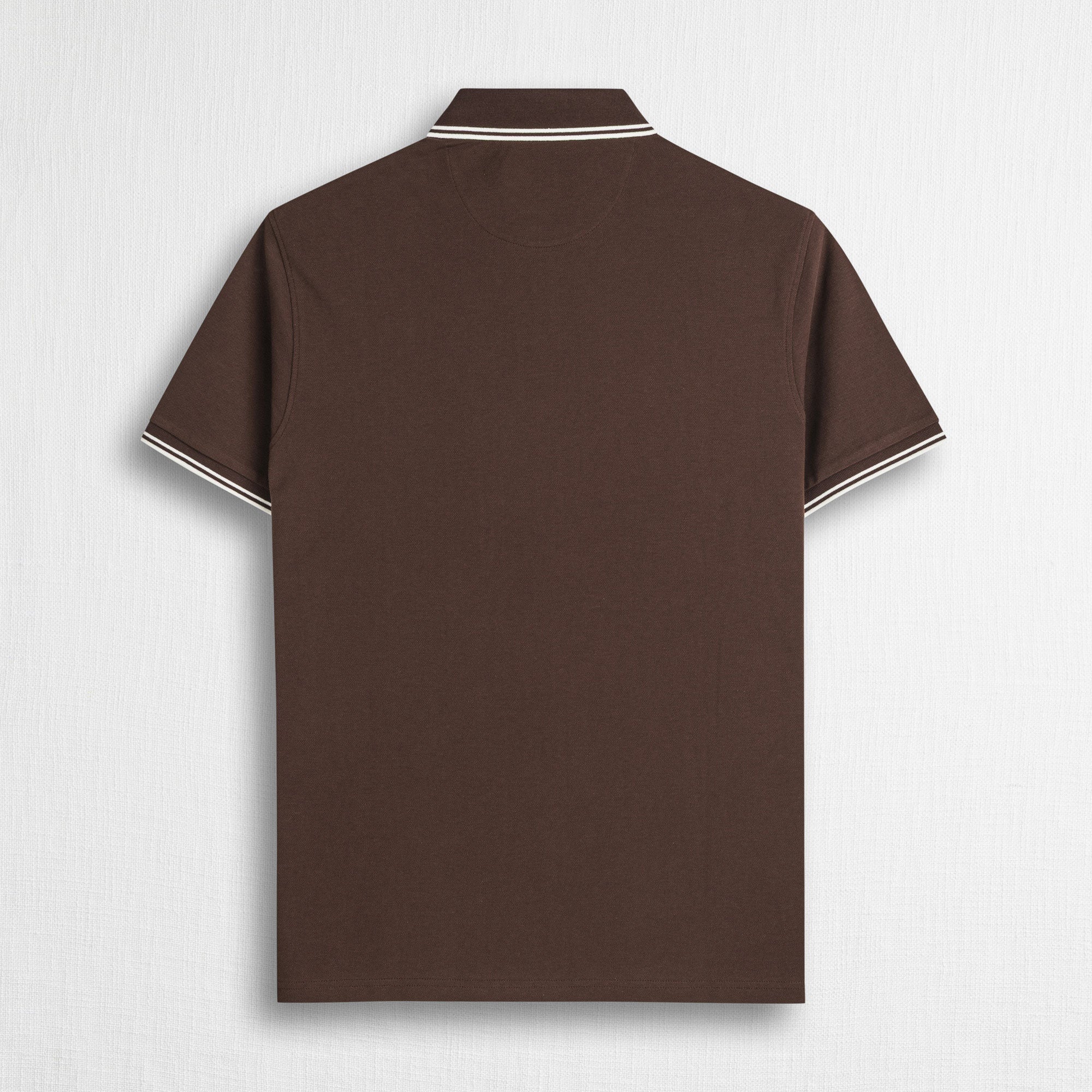100% Cotton Piqué Polo with Striped Details - Chocolate