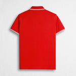100% Cotton Piqué Polo with Striped Details - Spice Orange