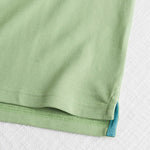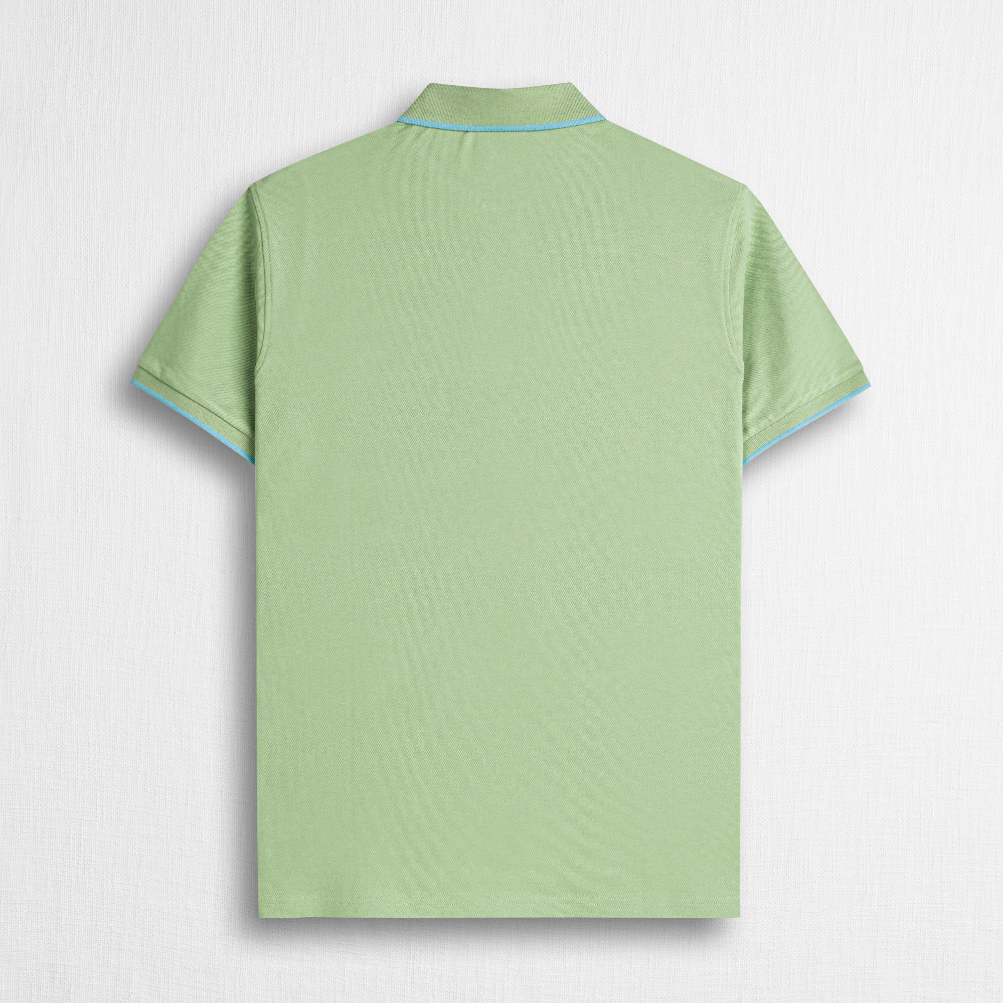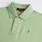 Light Green short-sleeve polo shirt in stretch cotton piqué, designed to offer adaptable comfort. The classic design is enhanced by a ribbed collar and cuffs with a contrasting stripe, a distinctive detail that gives this solid-color polo a sporty yet elegant look. Logoed pearl buttons, side slits, and a slightly longer back hem complete the model. The Rider MCS embroidery on the chest adds a recognizable and timeless touch to the garment.