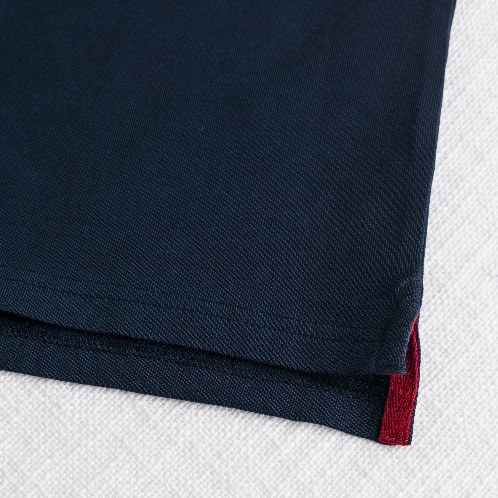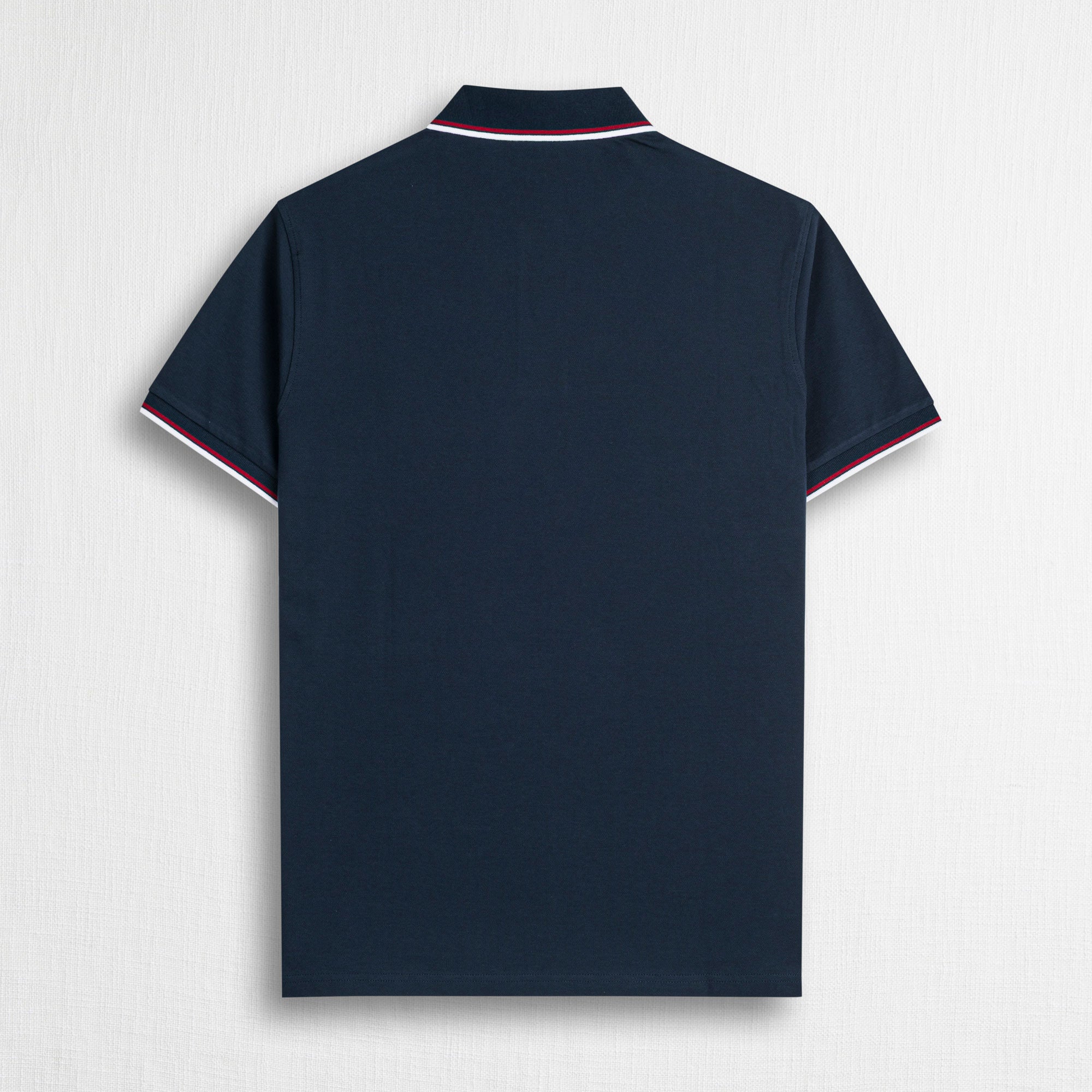 Short-sleeve Navy Blue polo shirt in stretch cotton piqué, comfortable and breathable, ideal for a sophisticated casual look. The monochromatic design of the classic polo is enhanced by the detail of the two-tone stripes on the ribbed collar and cuffs, adding dynamism to the solid fabric while maintaining a sober and modern balance. The logoed pearl buttons and the Rider MCS embroidery on the chest complete the garment with a refined and authentic touch. Regular fit, side slits, and a longer back hem ensure freedom of movement.