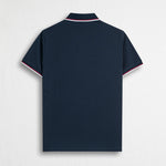 Stretch Cotton Piqué Polo with Two-Tone Stripes - Navy Blue