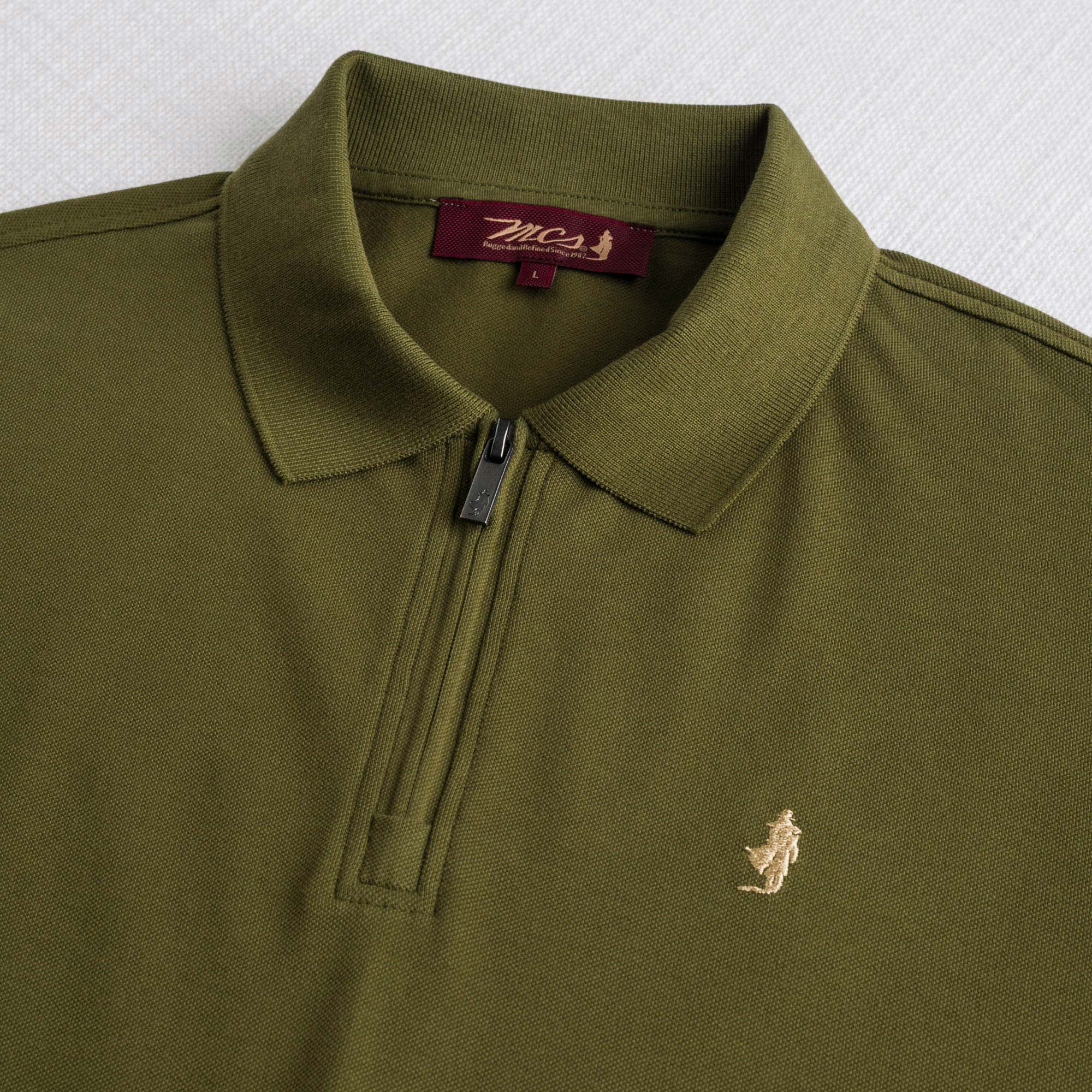 Stretch Cotton Piqué Polo with Zip - Dark Olive