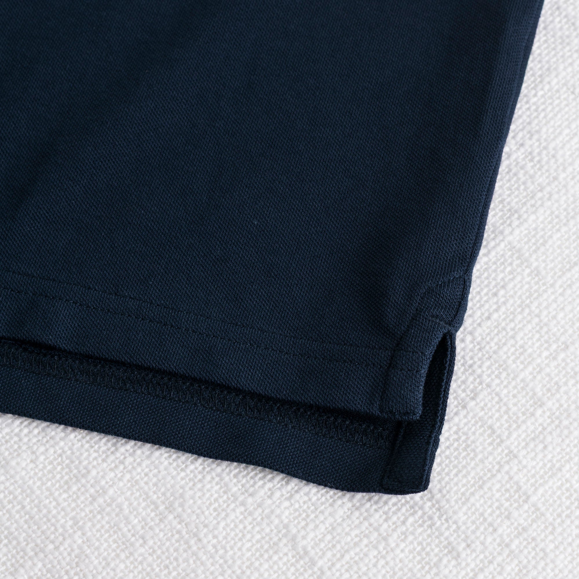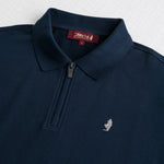 Stretch Cotton Piqué Polo with Zip - Navy Blue