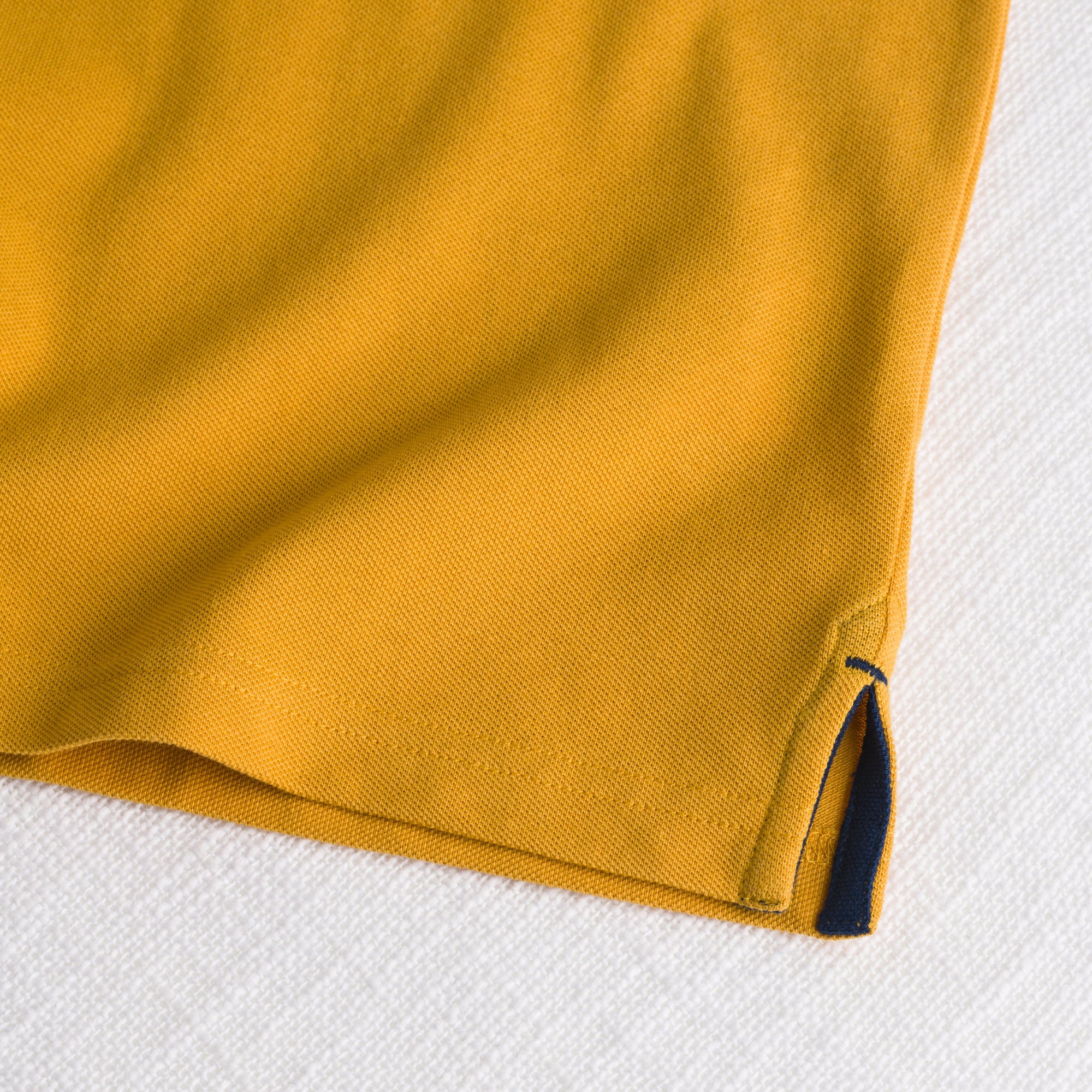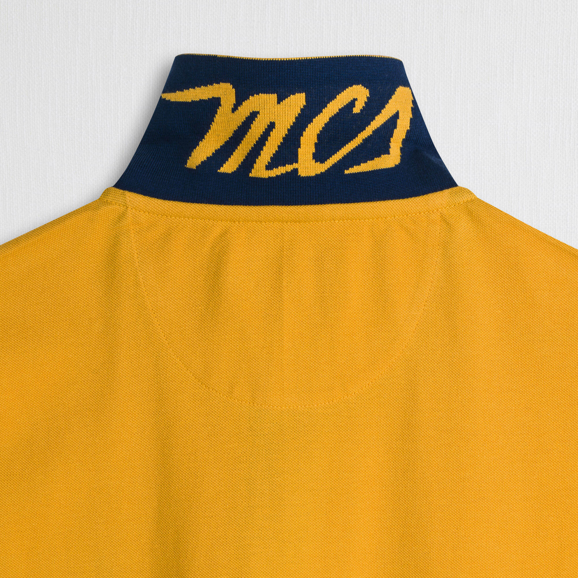 Short-sleeve polo shirt in Gold Yellow stretch cotton piqué, soft and lightweight, perfect for a refined casual look. The two-tone jacquard collar is enhanced by the MCS logo on the reverse for a subtle style detail. Logo-embossed pearl buttons and the Rider MCS embroidery on the chest complete the design with a touch of authenticity and attention to detail. Side slits at the hem ensure an optimal fit and freedom of movement, while the Regular fit guarantees a comfortable and always stylish look, suitable for any occasion.