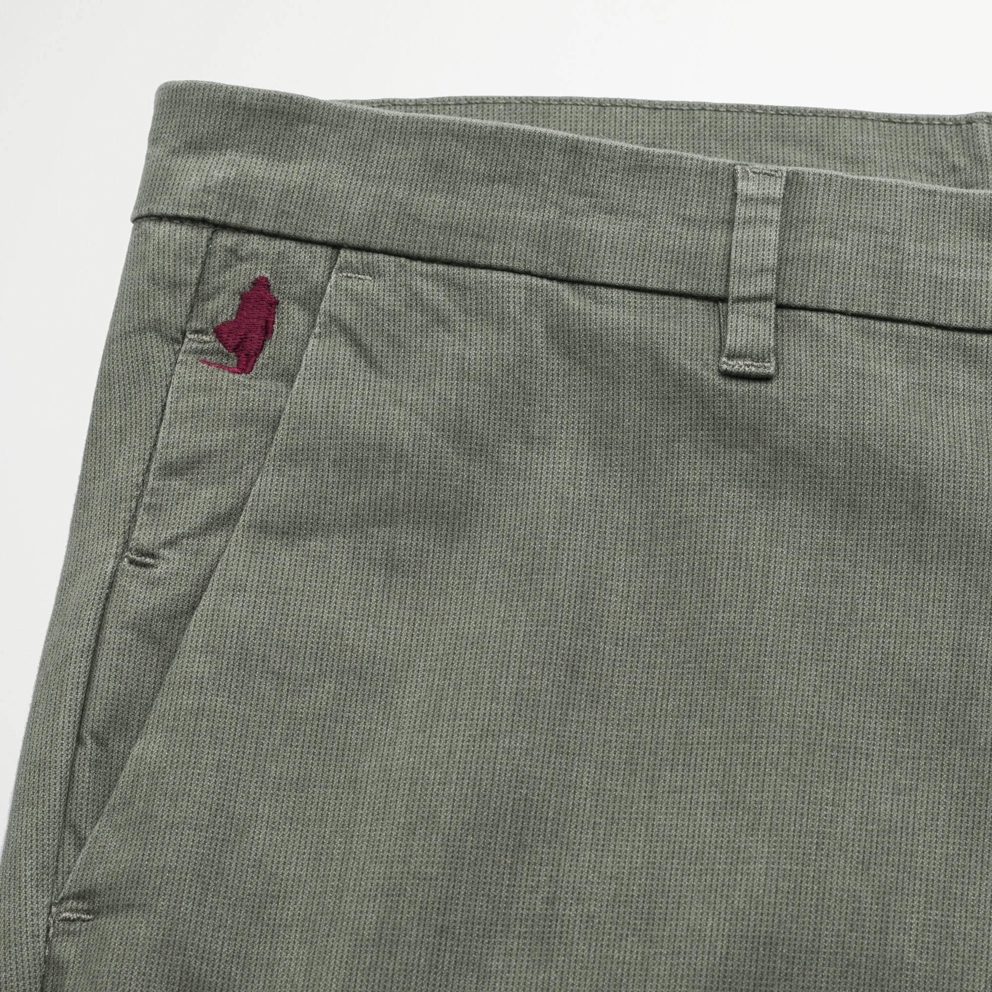 Chino pants in Bedford Cord delavé stretch, with a slim fit that combines elegance and comfort. This fabric, characterized by thin vertical raised ribs similar to corduroy, offers a refined texture and superior durability. The delavé treatment gives a vintage and worn effect, enhancing the color nuances and making each piece unique. The Rider MCS embroidery on the right pocket adds a distinctive detail, while the enzymatic wash ensures an incredibly soft hand feel. Perfect for a sophisticated casual look.