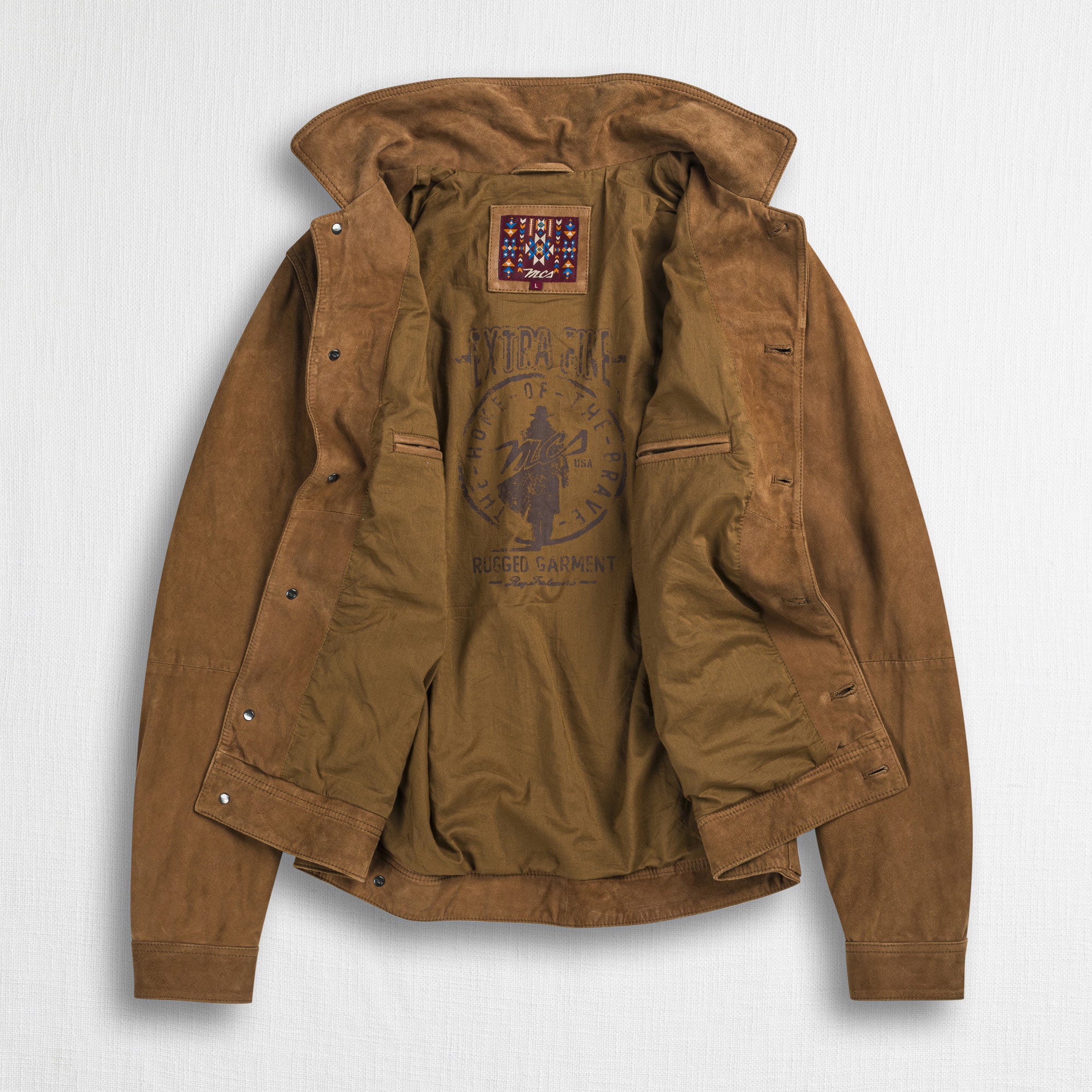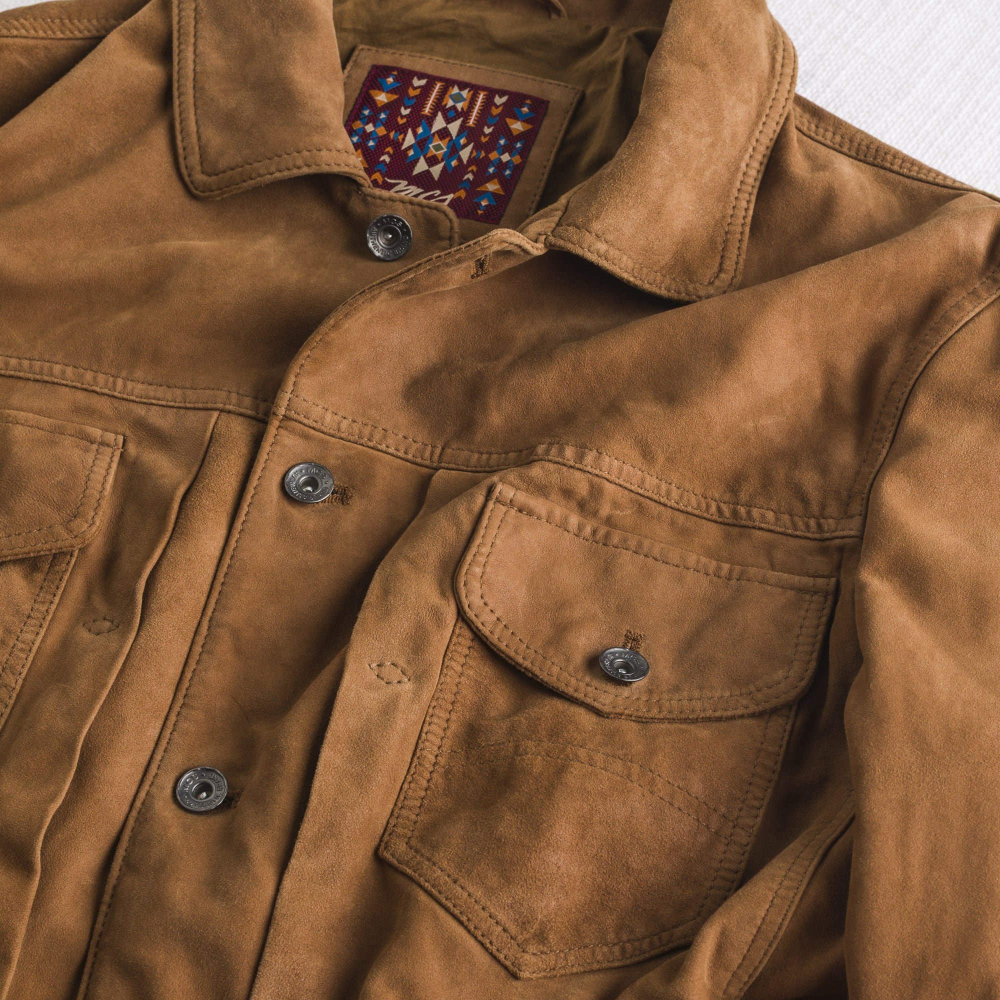 Trucker jacket in soft Light Cognac goat leather, inspired by the iconic denim jacket but reinterpreted with a premium touch, thanks to the wash that gives the garment an authentic, worn look. Classic design with logoed metal button closure and two flap pockets with button on the upper part, plus a convenient inner pocket. A trucker jacket with a strong character, finished with a printed inner lining and the refined MCS signature on the upper back.