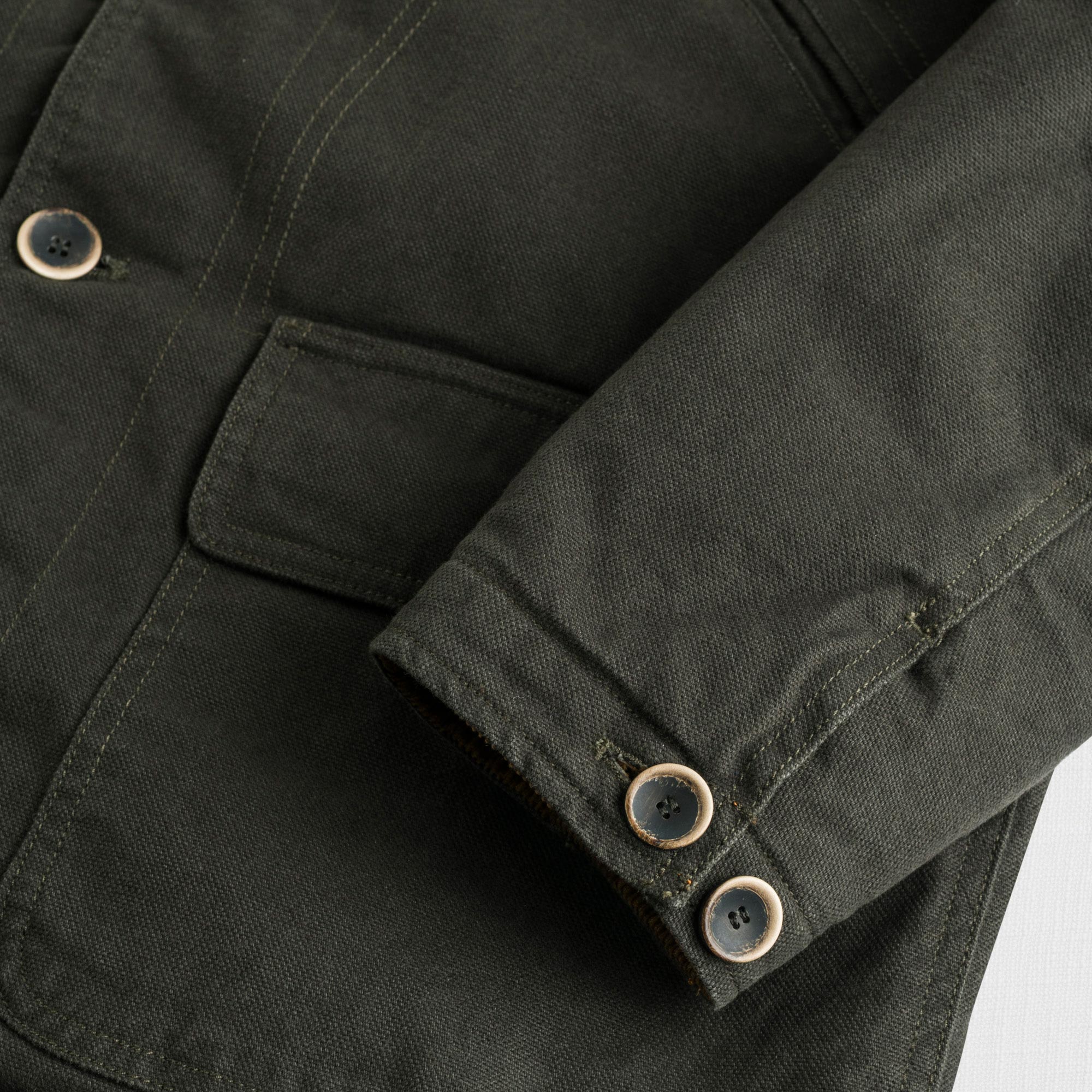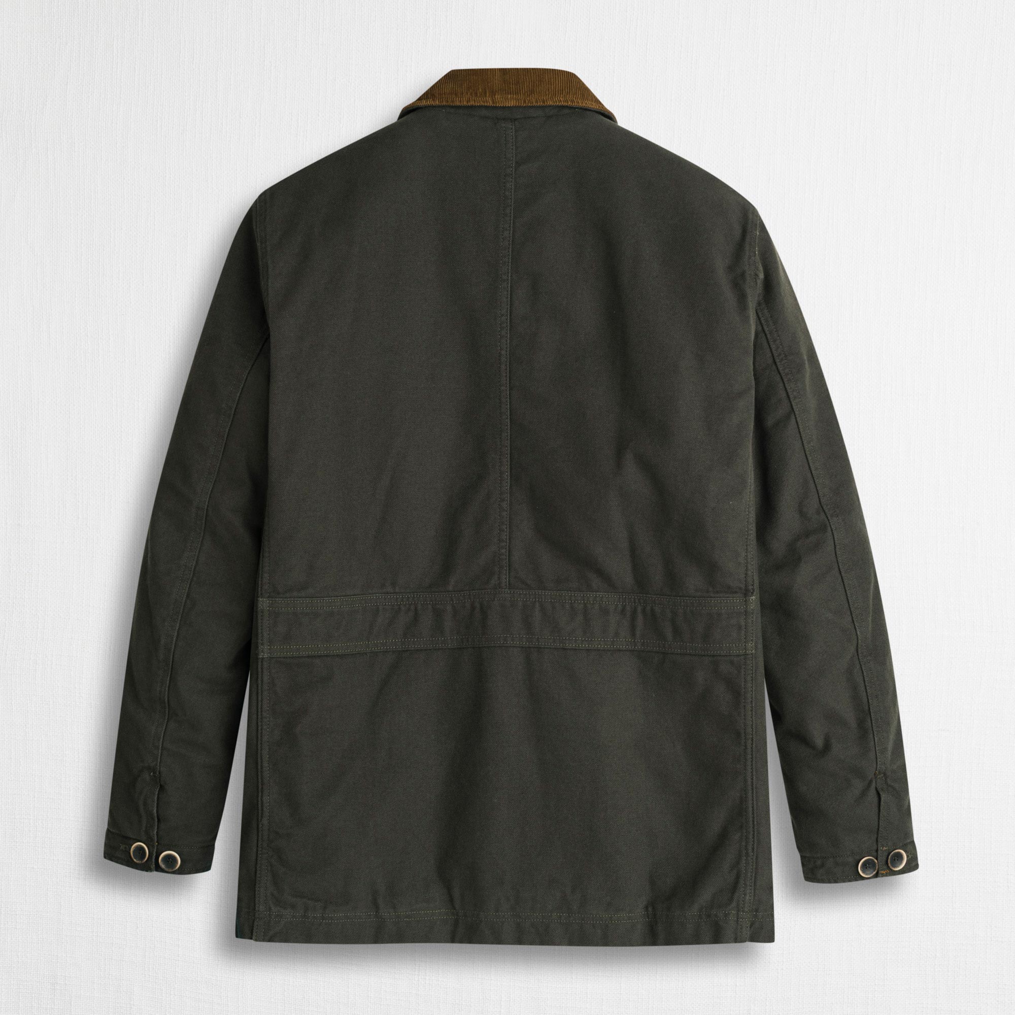 Caban da uomo in cotone lavato dal sapore vintage, con tasche sagomate con pattina e taschino sul petto, anch'esso con pattina. Il collo in velluto a coste e i bottoni quattro fori logati completano il design con un tocco autentico e ricercato. L’interno imbottito e trapuntato rende questo giubbotto in cotone perfetto per affrontare i mesi più freddi con comfort.