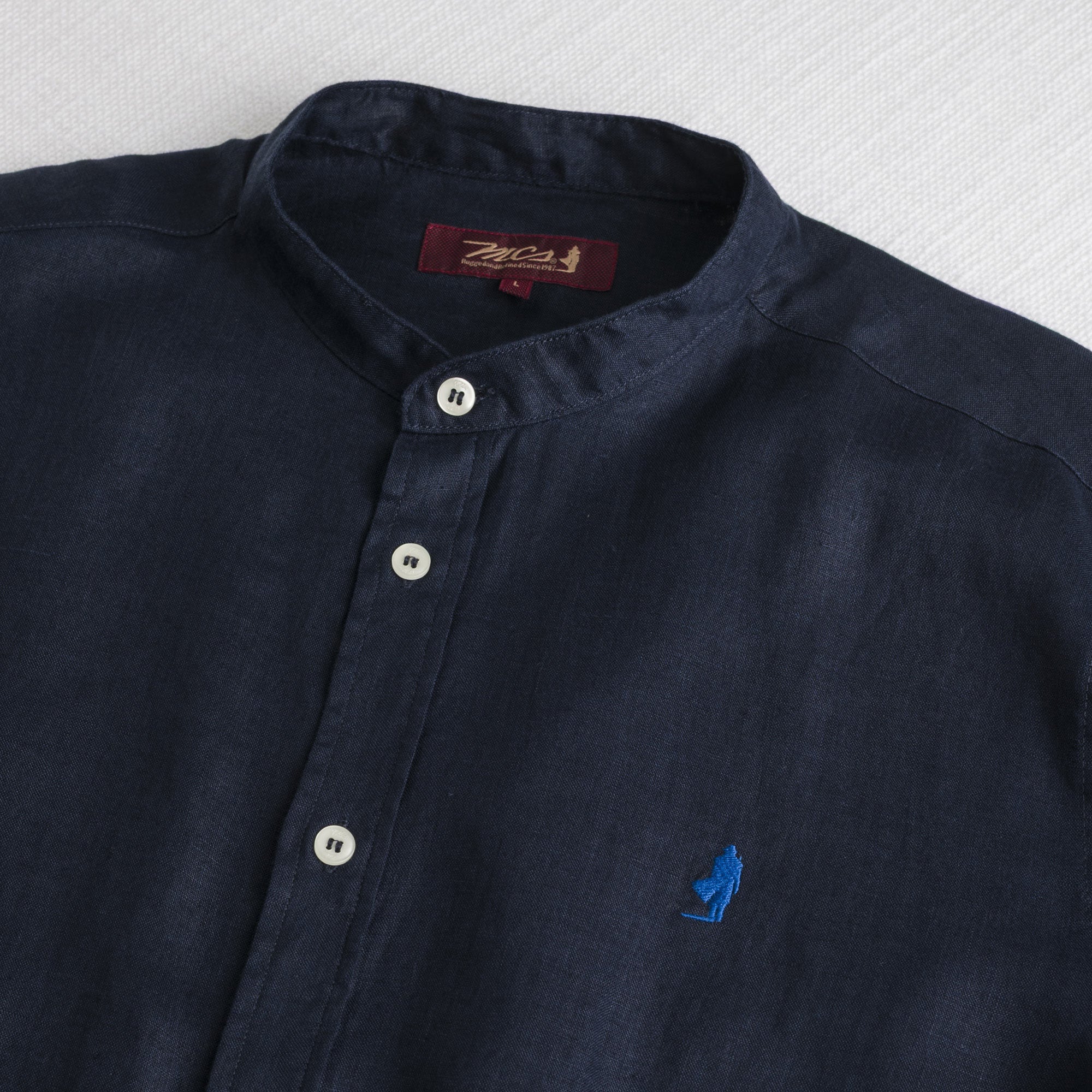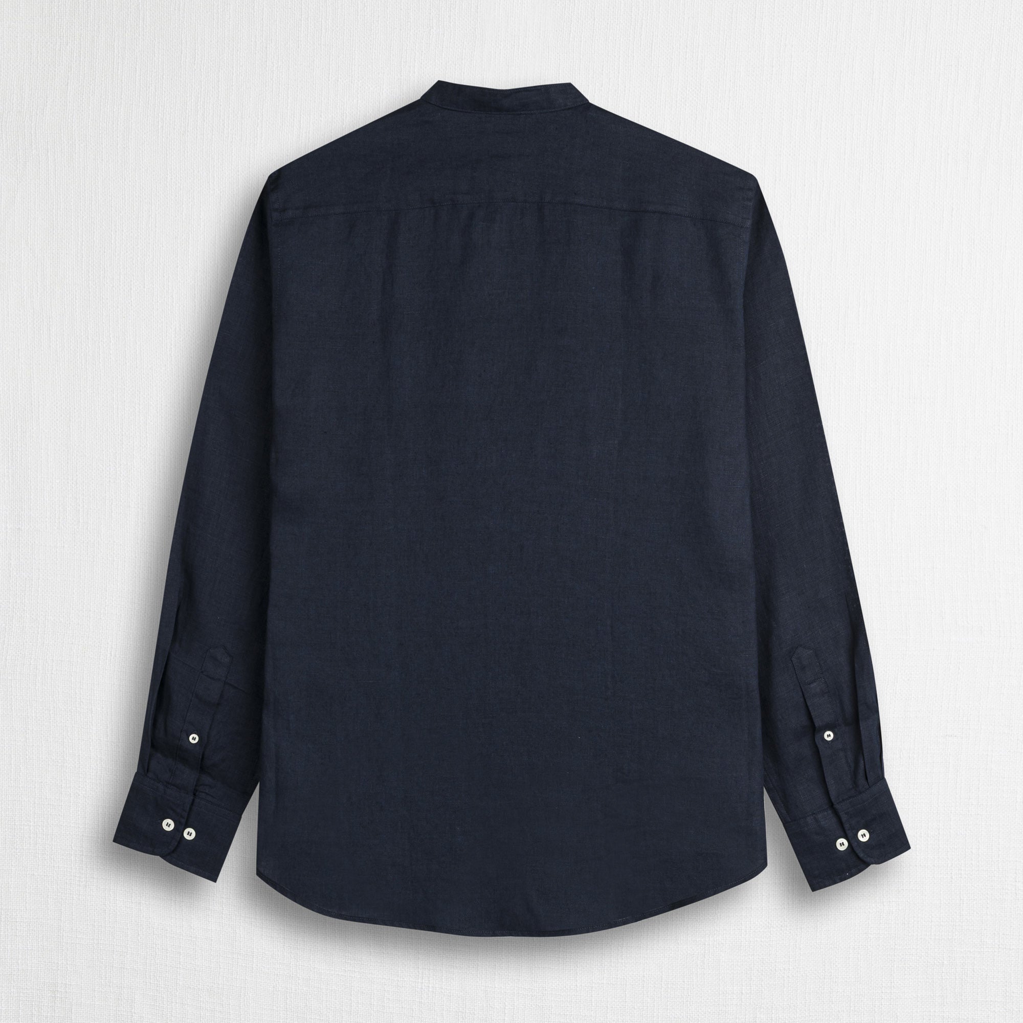 Camicia 100% lino con collo alla coreana - Navy Blue