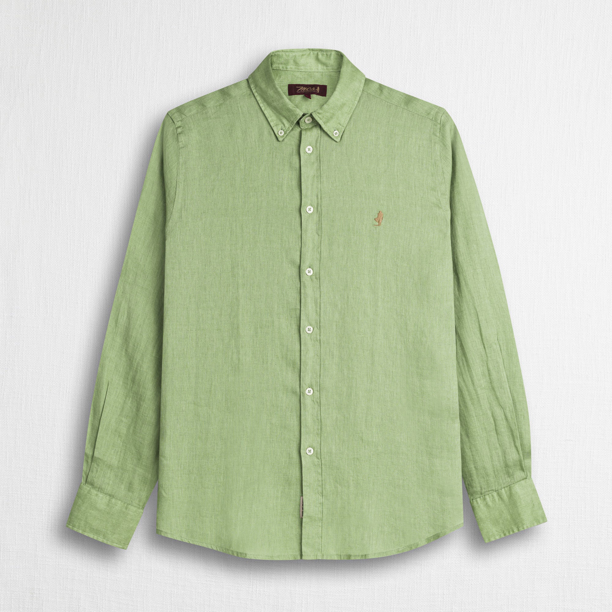 Camicia di lino Light Green uomo a manica lunga realizzata in puro lino tinto in pezza, lavorazione che valorizza l’intensità del colore mantenendo il tessuto leggero e fresco. Ideale per la stagione calda grazie alla sua leggerezza e traspirabilità, questa camicia uomo tinta unita combina freschezza e comfort in un design essenziale ma mai banale. Il colletto button-down e la vestibilità regular assicurano un’attitudine curata ma rilassata e sempre attuale. Il Ricamo del Rider MCS sul petto completa il look con un segno distintivo del brand.