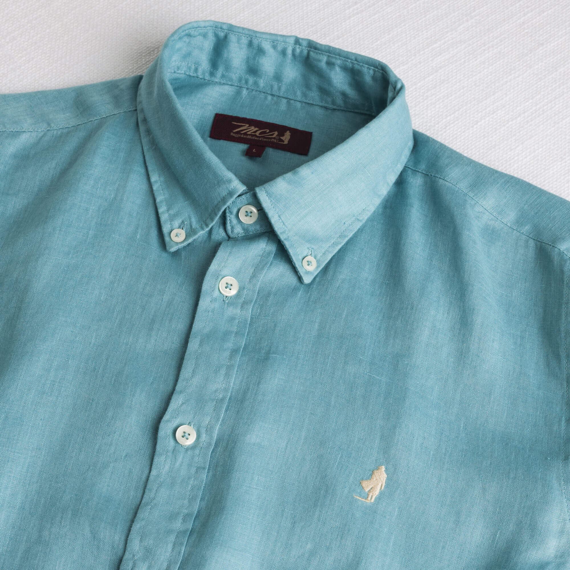 Camicia di lino Sky Blue uomo a manica lunga realizzata in puro lino tinto in pezza, lavorazione che valorizza l’intensità del colore mantenendo il tessuto leggero e fresco. Ideale per la stagione calda grazie alla sua leggerezza e traspirabilità, questa camicia uomo tinta unita combina freschezza e comfort in un design essenziale ma mai banale. Il colletto button-down e la vestibilità regular assicurano un’attitudine curata ma rilassata e sempre attuale. Il Ricamo del Rider MCS sul petto completa il look con un segno distintivo del brand.