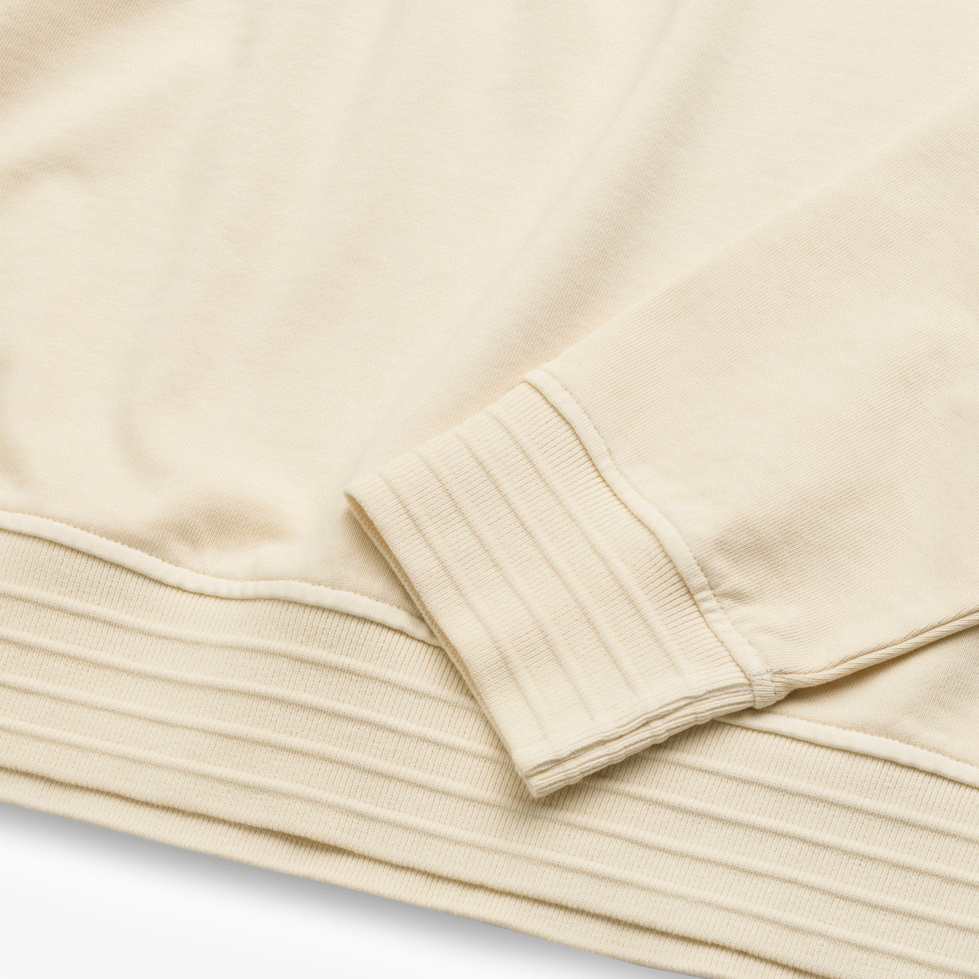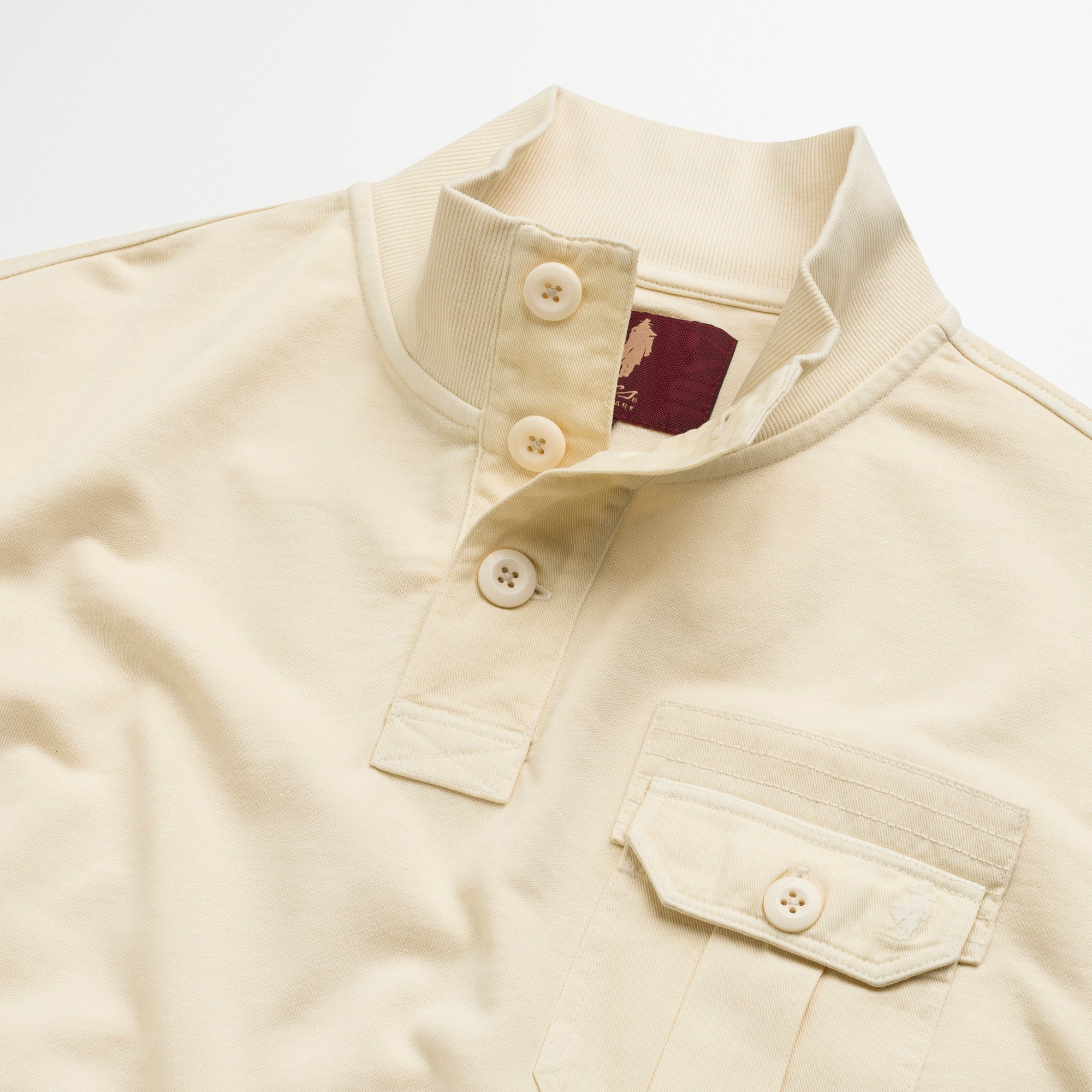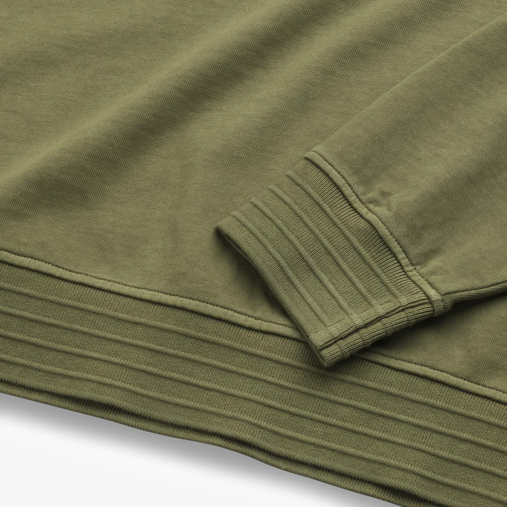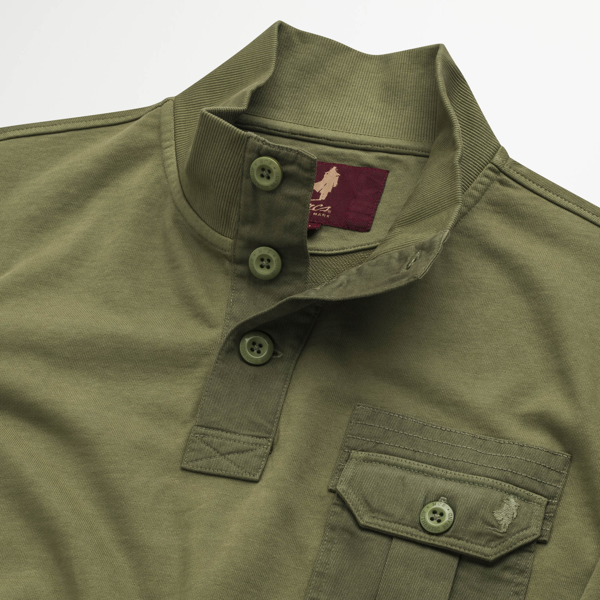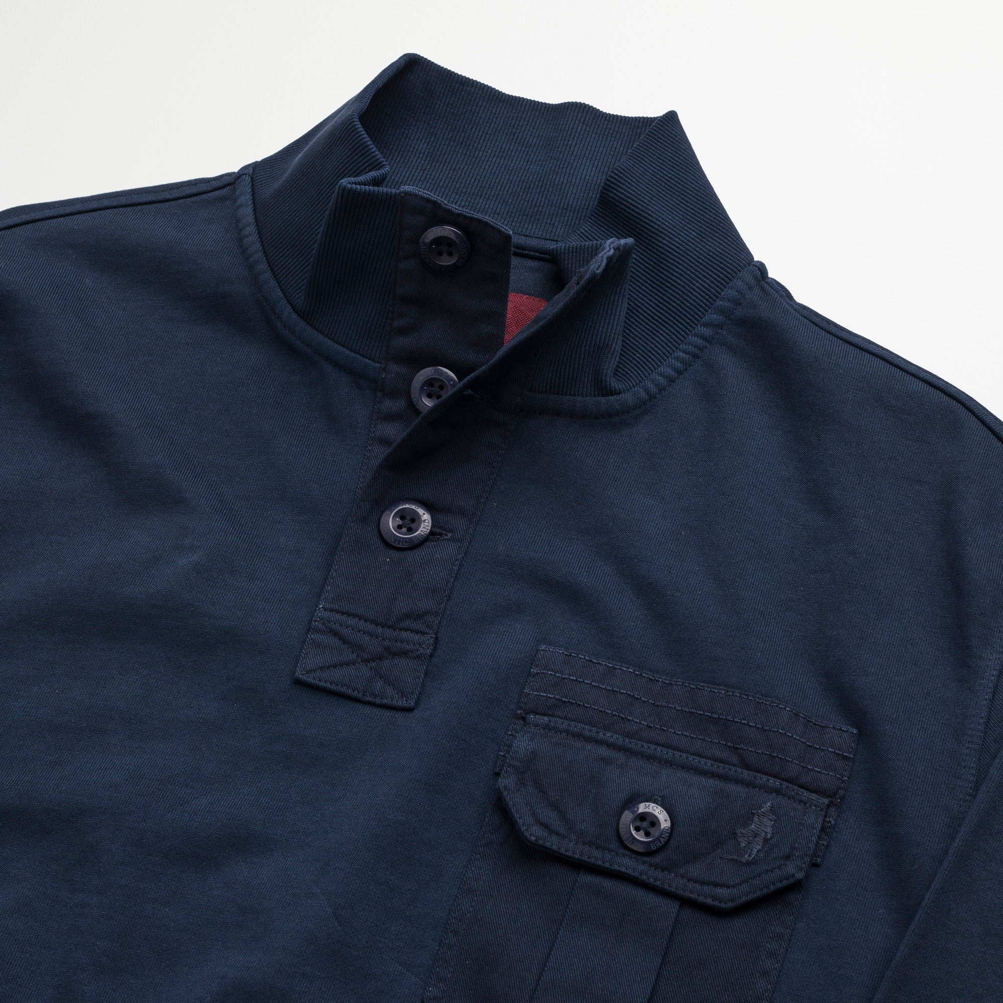 Felpa a collo alto in puro cotone tinto in capo, dallo stile essenziale e ricercato. La tintura a capo finito conferisce un affascinante effetto vissuto, mentre il trattamento enzimatico esalta la morbidezza del tessuto, rendendolo estremamente piacevole al tatto. Il design è impreziosito da dettagli distintivi, come la chiusura con bottoni tono su tono sul colletto, il taschino con pattina sul petto arricchito dal ricamo Rider MCS e i bordi in rilievo rigati su fondo e polsini. La vestibilità morbida e aggiornata garantisce massimo comfort e versatilità, perfetta per un look casual ma sofisticato.