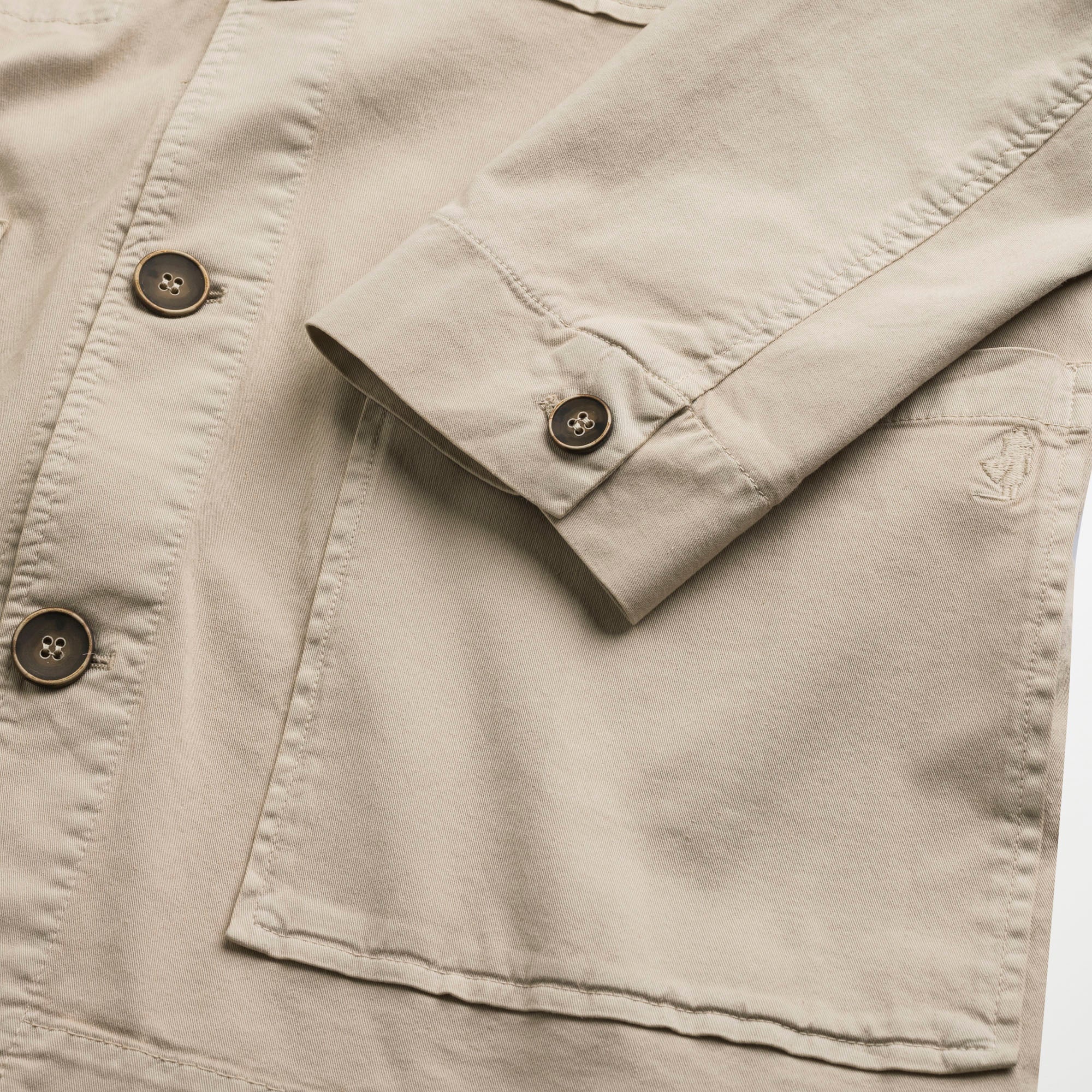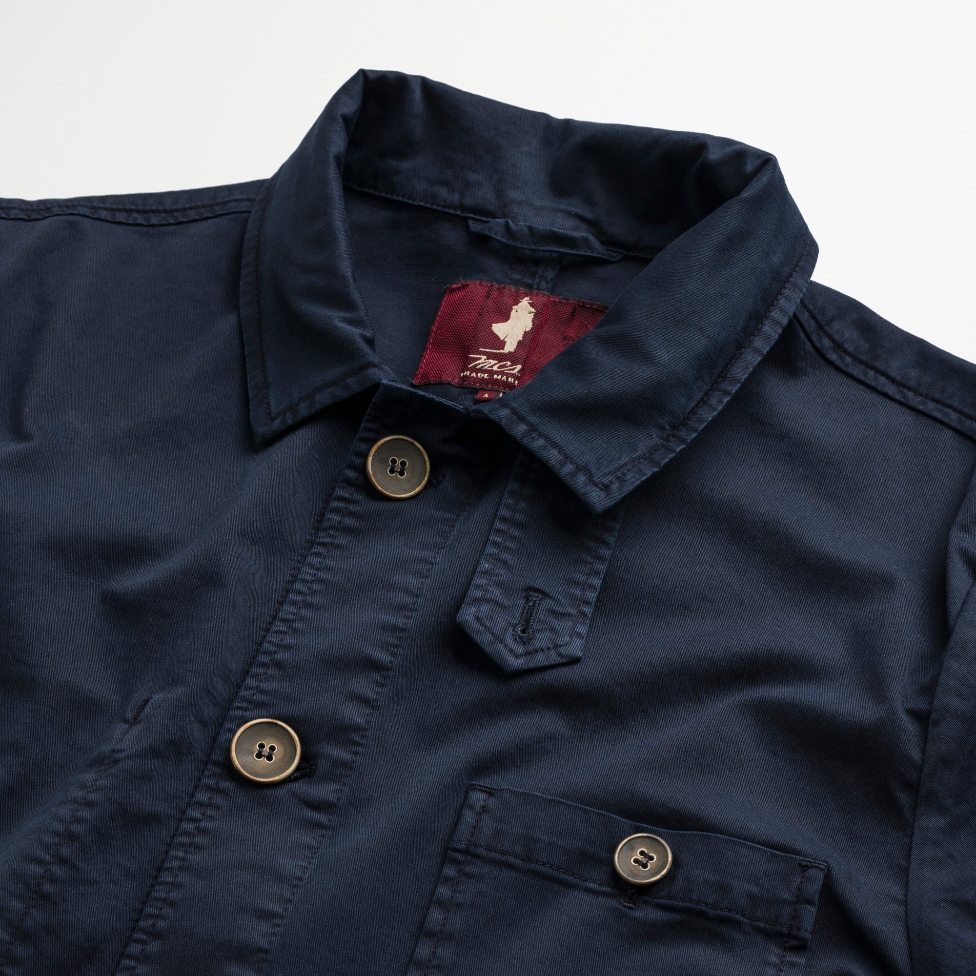 Giacca in cotone stretch ispirata allo stile workwear, ideale per chi cerca un capospalla che unisca praticità e stile. Il tessuto di cotone elasticizzato offre comfort e libertà di movimento, mentre la tintura in capo e il lavaggio enzimatico conferiscono un aspetto vissuto e una morbidezza senza pari. Le tre tasche applicate, una sul petto e due sui fianchi, aggiungono funzionalità senza sacrificare l’estetica. La chiusura con bottoni in simil corno e le finiture curate esaltano il carattere autentico del capo.