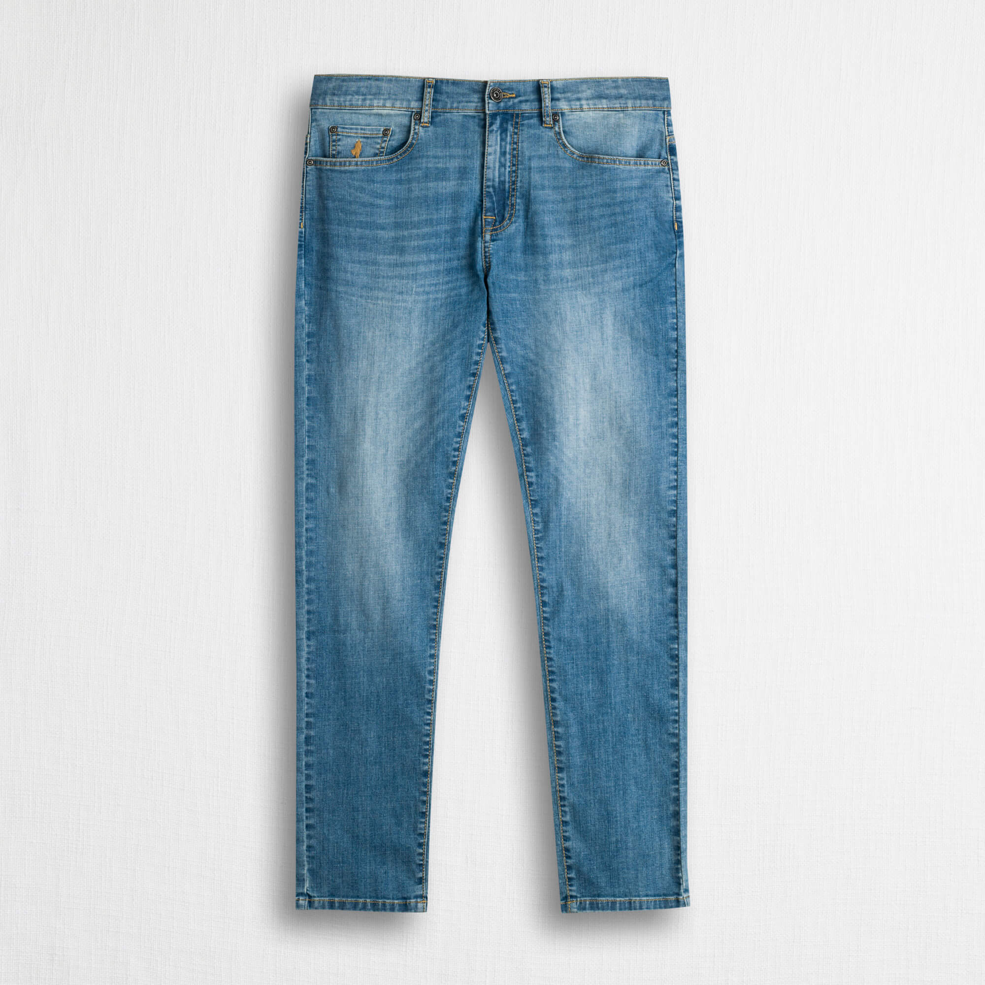 Pantalone 5 tasche in denim leggero Denim da 8 once elasticizzato, ideale per la stagione primavera/estate. Il design essenziale è impreziosito dai dettagli distintivi come il ricamo del rider MCS a contrasto sul taschino anteriore, l'etichetta MCS sulla tasca posteriore destra e la salpa jacron sul retro cintura, per un tocco di stile autentico. La vestibilità slim valorizza la silhouette vestendo con uno stile moderno e slanciato, mentre la struttura leggera della tela denim garantisce massima comodità durante la primavera estate.