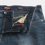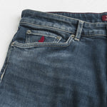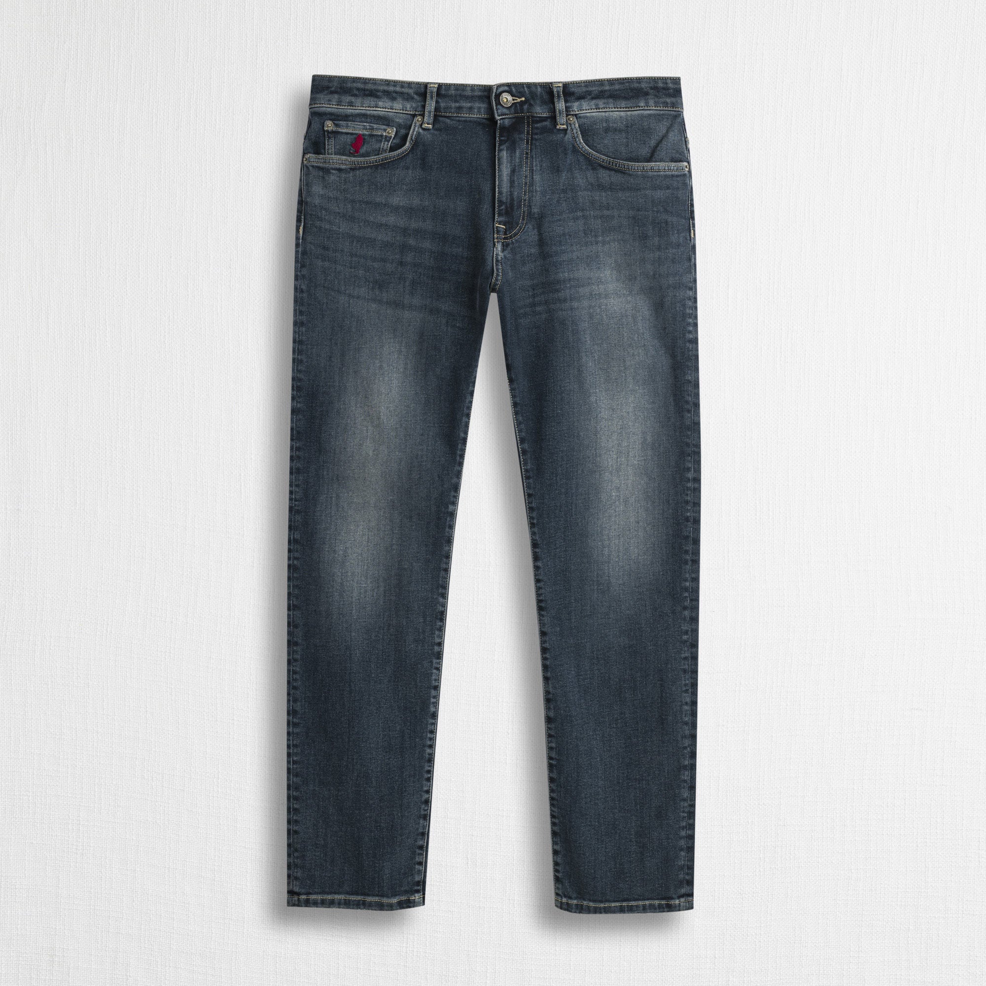 Jeans cinque tasche in blu denim stretch con lavaggio medio-scuro che dona profondità di colore. Design arricchito da dettagli curati come cuciture tabacco, bottoni e rivetti logati in metallo, salpa in pelle sul retrocinta e ricamo Rider sul taschino. La vestibilità regular fit garantisce comfort e libertà di movimento. Un classico MCS senza tempo.
