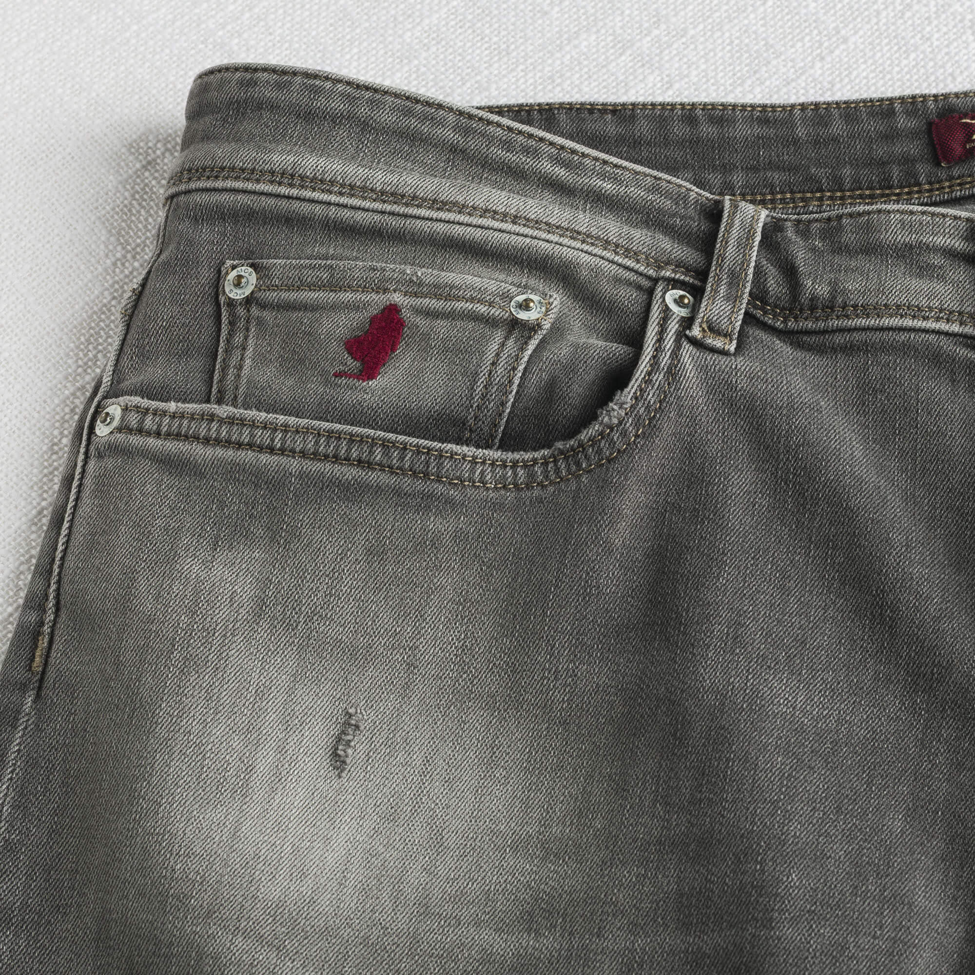 Jeans cinque tasche disponibili in due varianti: gray denim e black denim, entrambi con vestibilità slim fit. Un capo moderno e versatile, impreziosito da bottoni e rivetti logati in metallo color canna di fucile. Rifinito con salpa in pelle sul retrocinta e ricamo Rider sul taschino, rappresenta la perfetta unione di stile essenziale e comfort quotidiano.