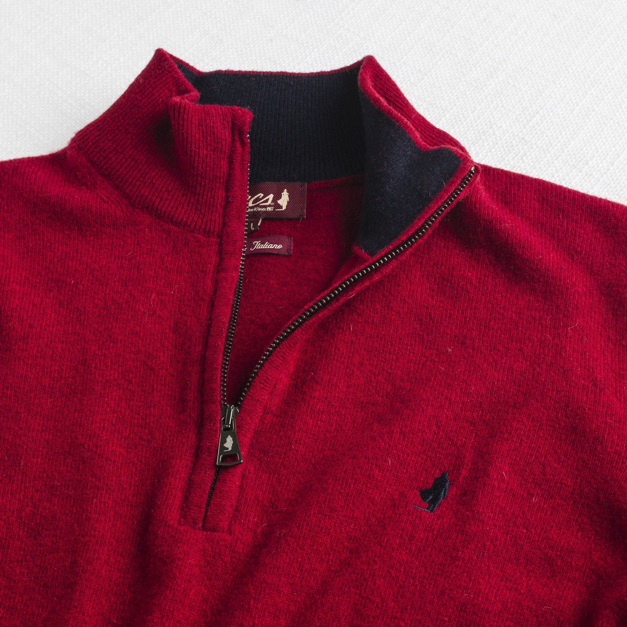 Maglione uomo con mezza zip in lambswool extra fine, finezza 12. Morbido e caldo grazie al lavaggio con enzimi, si distingue per il colore tinta unita con contrasto interno al collo e il ricamo Rider sul punto cuore. Con la sua vestibilità attuale e disinvolta, è un capo essenziale per un look contemporaneo all'insegna di comfort e stile autentico.