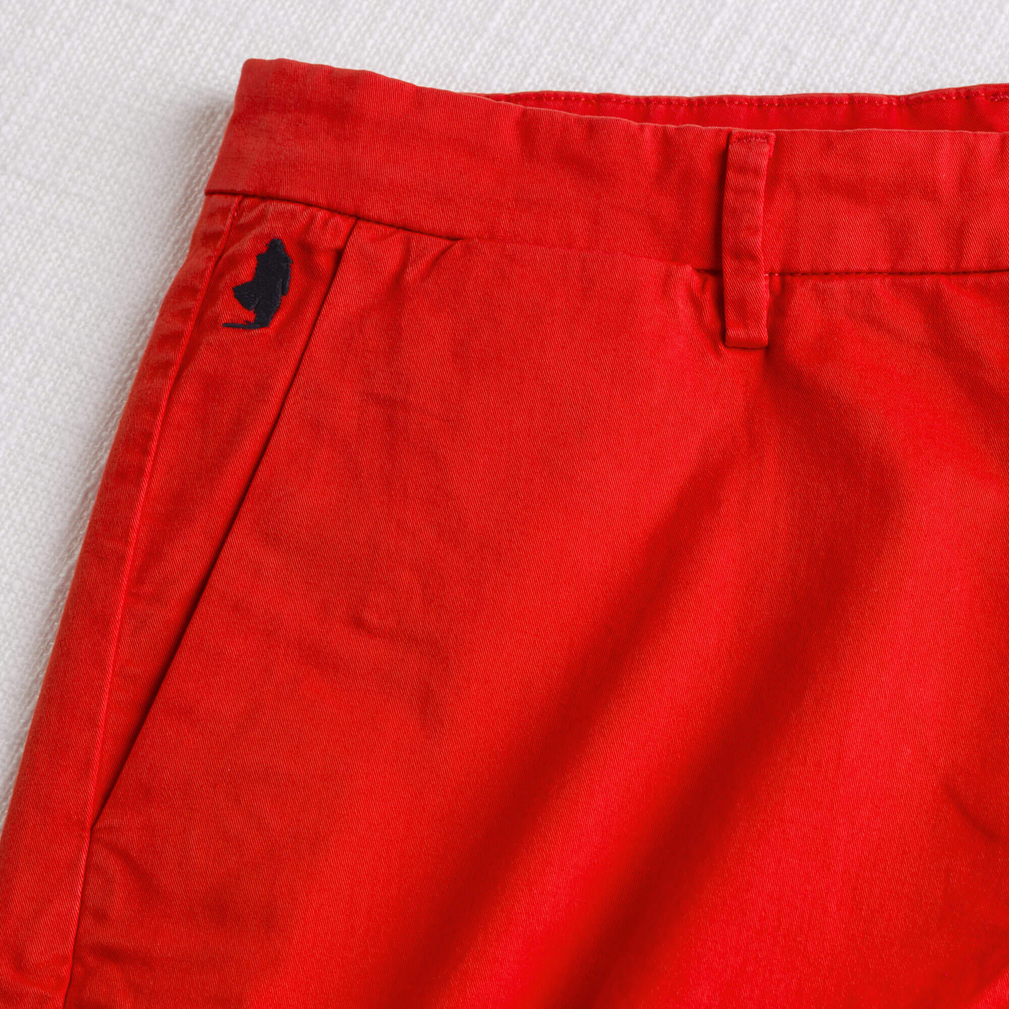 Pantalone chino estivo corto Spice Orange in gabardina stretch, ideale per un look casual e raffinato. La gabardina di cotone elasticizzata, con la sua caratteristica trama diagonale, assicura comfort e resistenza, mentre la tintura in capo dona al tessuto profondità cromatica e un aspetto autentico. Il ricamo Rider MCS sulla tasca destra completa il design firmando questo pratico e versatile bermuda da uomo.