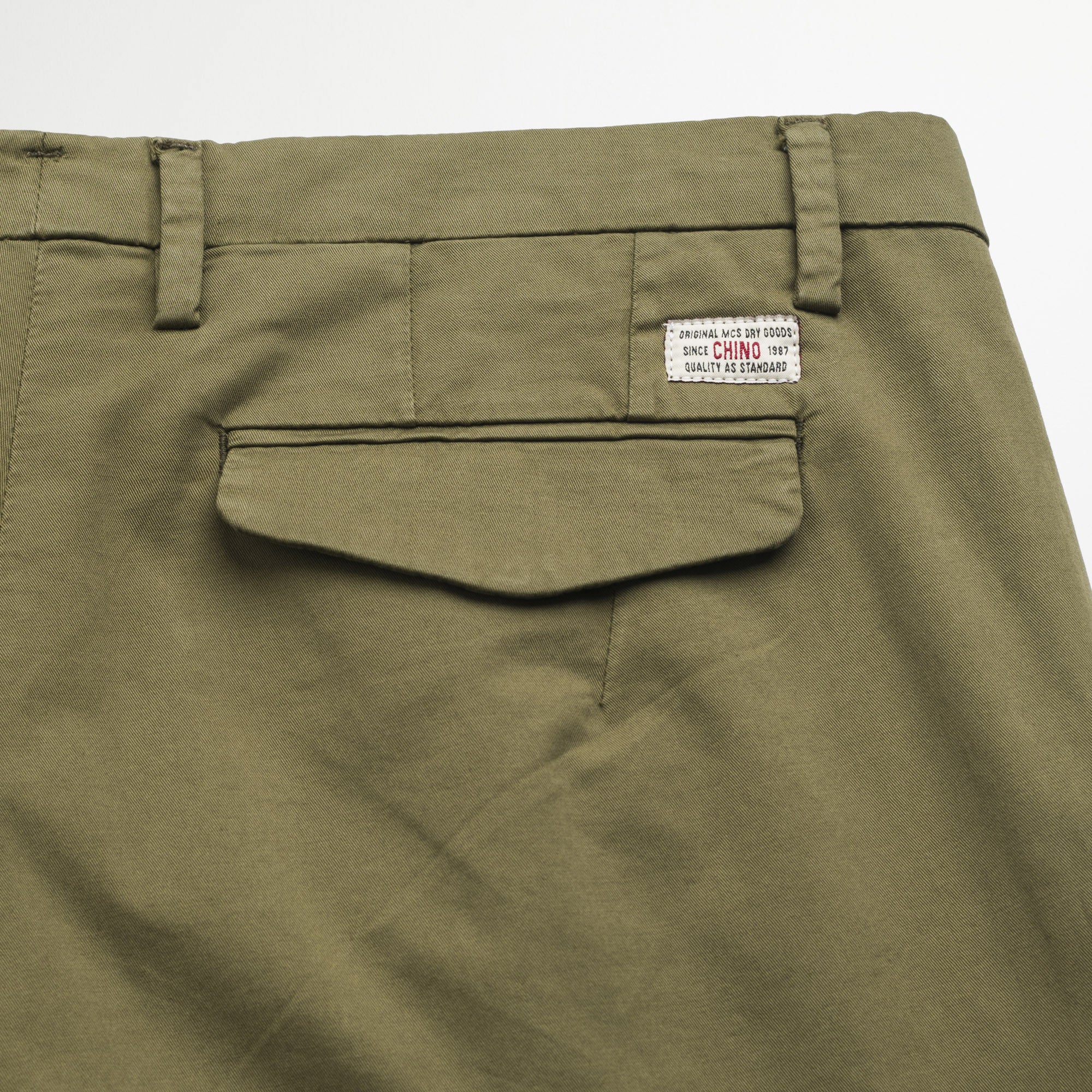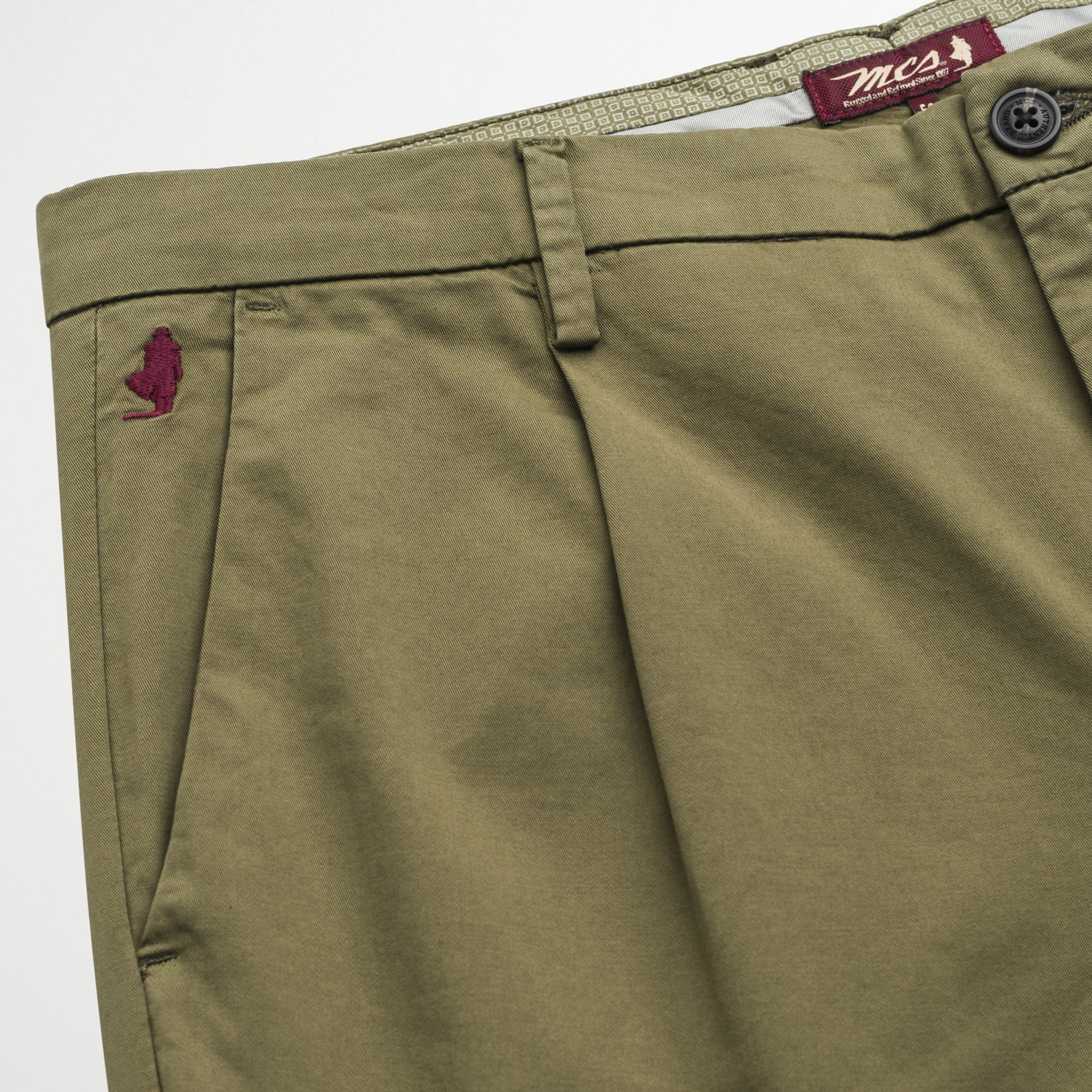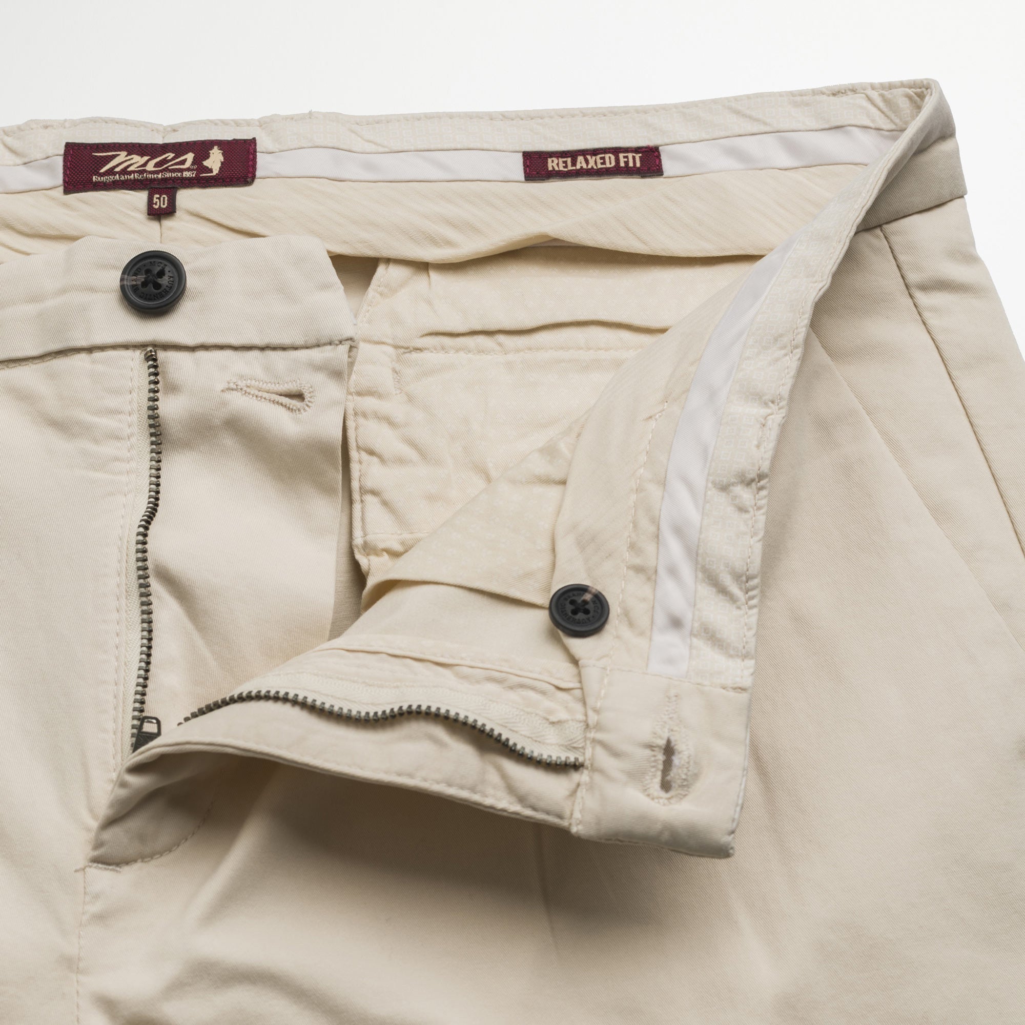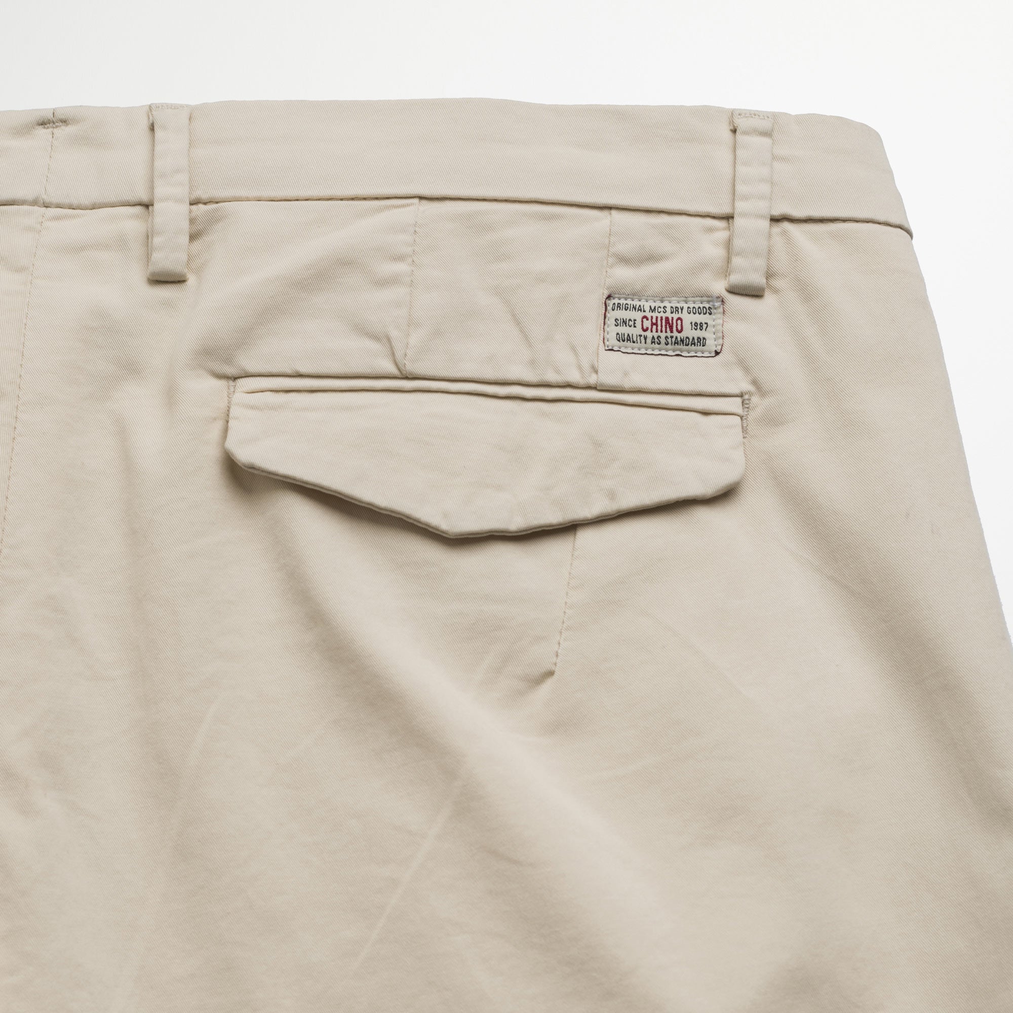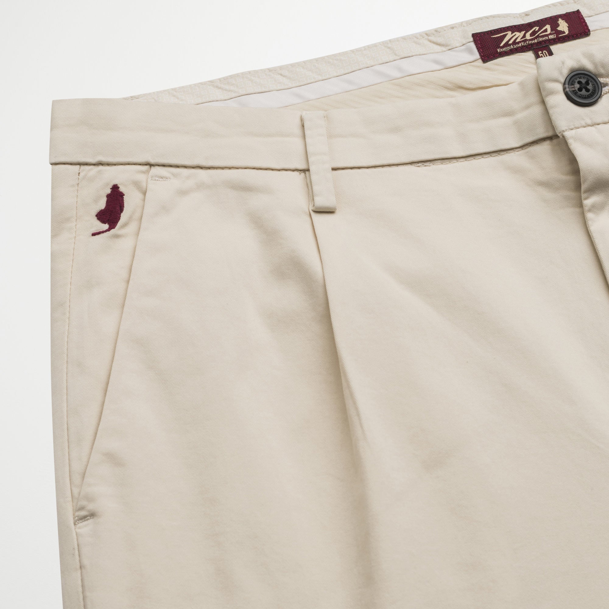 Pantalone chino con pinces in twill stretch tinto capo, caratterizzato da una vestibilità relaxed che garantisce massimo comfort e libertà di movimento. Le pinces donano un tocco sartoriale, valorizzando la silhouette con un'eleganza naturale. Il tessuto in twill elasticizzato assicura resistenza e morbidezza, rendendolo perfetto per un look raffinato ma rilassato. Il ricamo Rider MCS sulla tasca destra aggiunge un dettaglio distintivo, mentre il lavaggio enzimatico conferisce una mano estremamente morbida e piacevole al tatto.