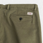 Pantalone chino uomo in gabardina di cotone elasticizzato, tinto a pigmento con effetto “Antique” per un look vissuto e sfumature uniche. Il tessuto di gabardina di cotone conferisce al pantalone resistenza e una mano fine. Tasche posteriori a filetto, logo Rider ricamato sul lato destro, etichetta tessuta sul dietro e bottoni MCS completano questo capo dalle linee pulite e senza tempo.