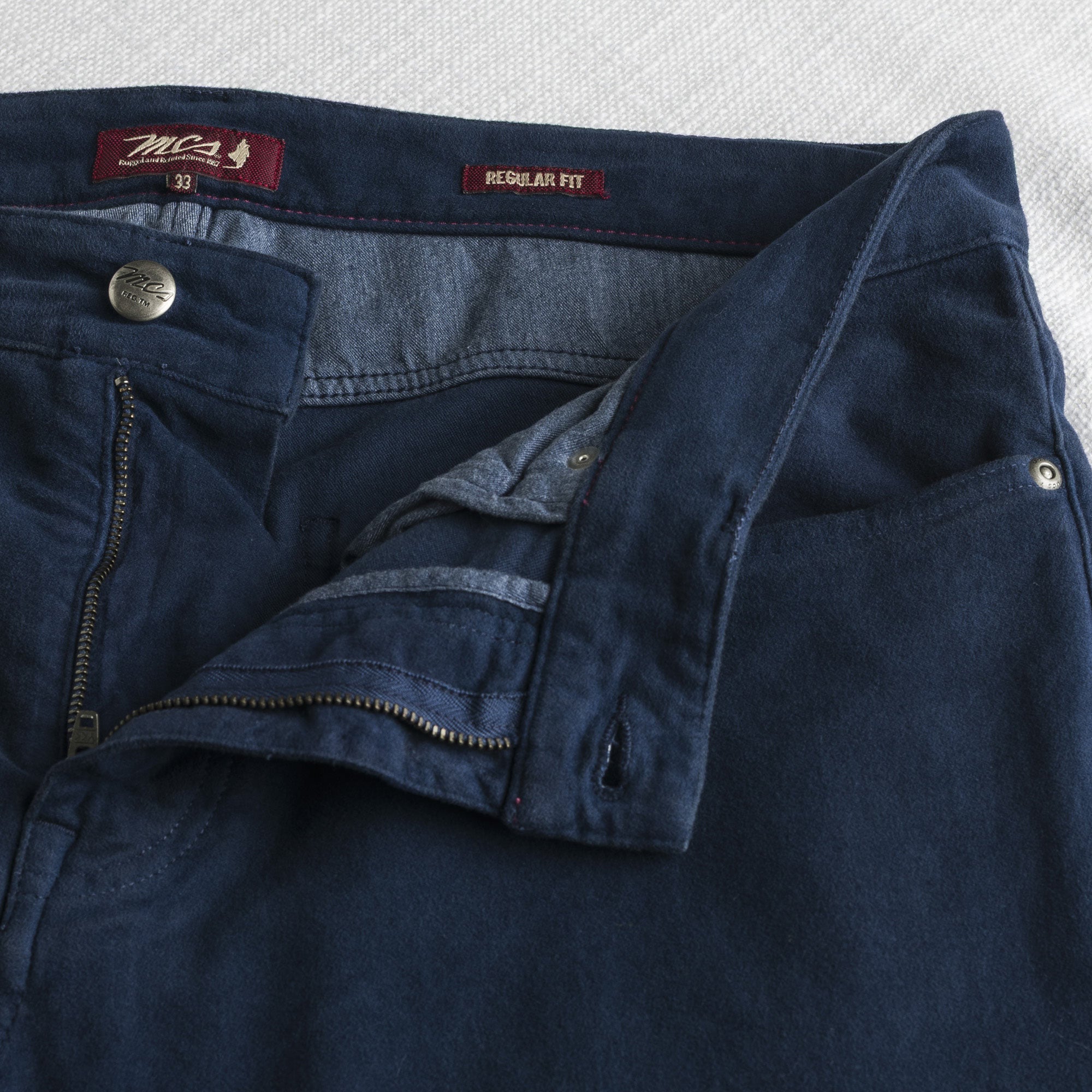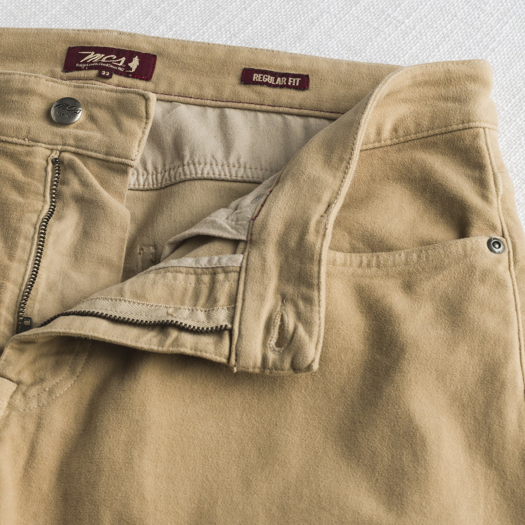 Pantalone cinque tasche uomo in fustagno elasticizzato, tessuto caldo e vellutato tinto a pigmento e lavato con enzimi per una maggiore morbidezza e un colore ricco di sfumature. Completano il design i dettagli di stile come bottoni e rivetti canna di fucile e personalizzati con il logo MCS, salpa in jacron sul retro cintura e logo Rider.