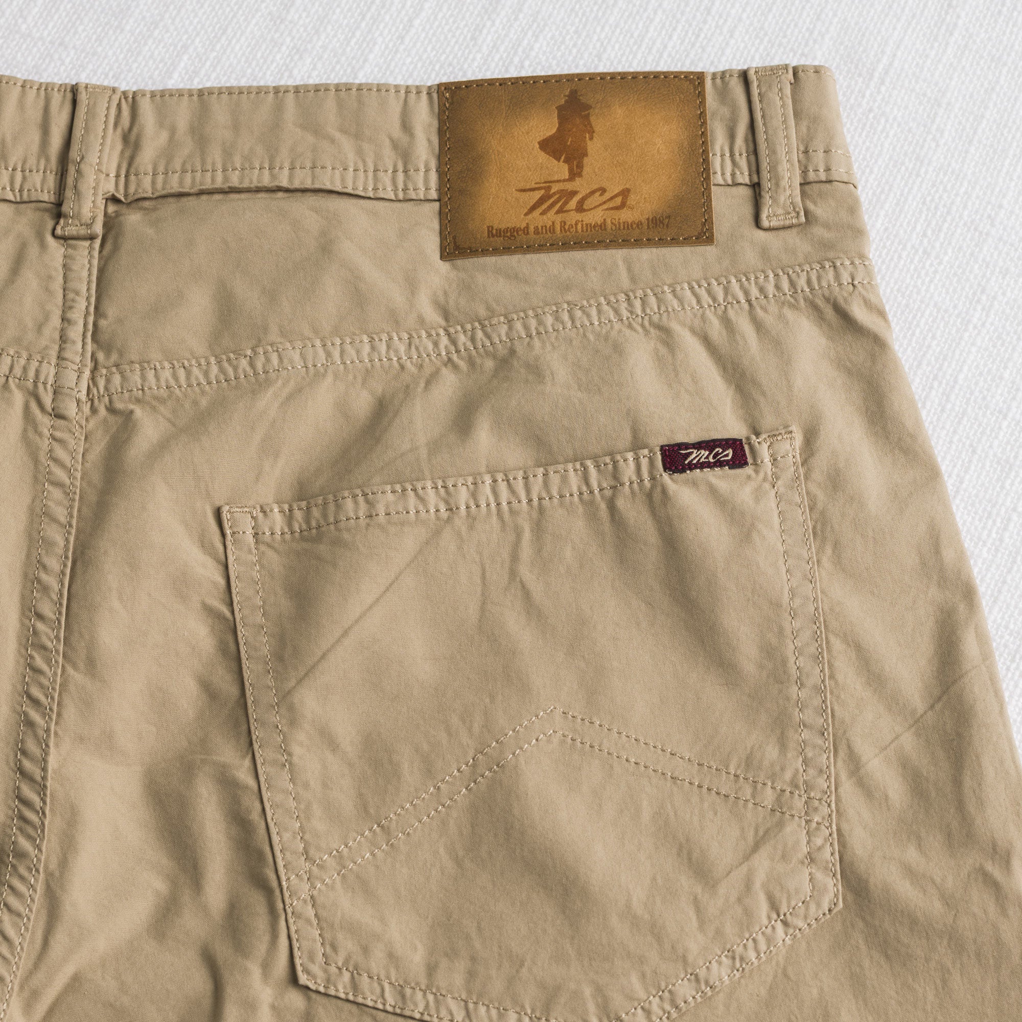 Pantaloncini estivi corti Khaky modello 5 tasche in popeline di cotone elasticizzato sovratinto, leggeri e confortevoli per un look estivo fresco e raffinato. Il popeline, grazie alla sua trama fitta, assicura resistenza e morbidezza, mentre la tintura in capo conferisce un effetto vissuto con sfumature uniche e una colorazione polverosa dal fascino vintage. Il ricamo Rider MCS sul taschino aggiunge un dettaglio riconoscibile a questo pantalone corto pensato per un utilizzo quotidiano.